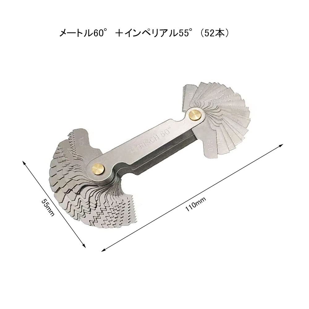 3.【用途】ねじ山のピッチを検出するために使用されます。ねじ、ボルト、タッパー穴の1インチ/ mmあたりのねじ山を測定するのに使用します。金属旋盤でねじ山を切断するときに工具角度を確認すると便利です。