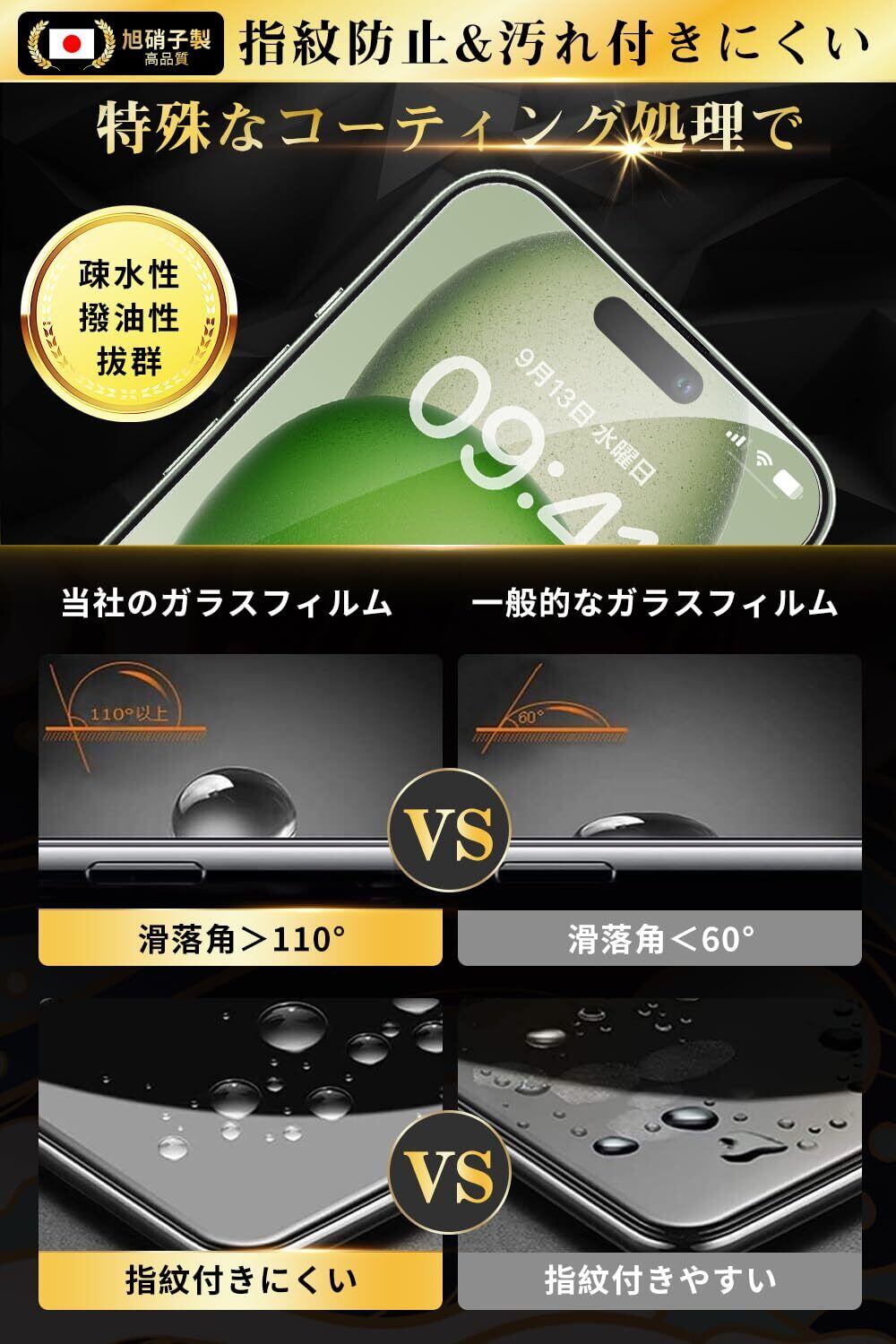 【疎水性、撥油性拔群!極上の一体感】極薄ガラスフィルムに高耐久撥油コーティングが施され、汚れや油分をはじき、指紋がつきにくく、付着した汚れなどは簡単に拭き取れます。 15 プラス ガラスフィルムに強粘着性、自動的に吸着し、気泡に悩まされることなく、より簡単に、より綺麗に液晶保護フィルムを貼り付けることができる!高精度加工の2.5Dラウンドエッジをしており、スマホの湾曲した部分にピッタリとフィットし、一体感のあるデザインとなっています。