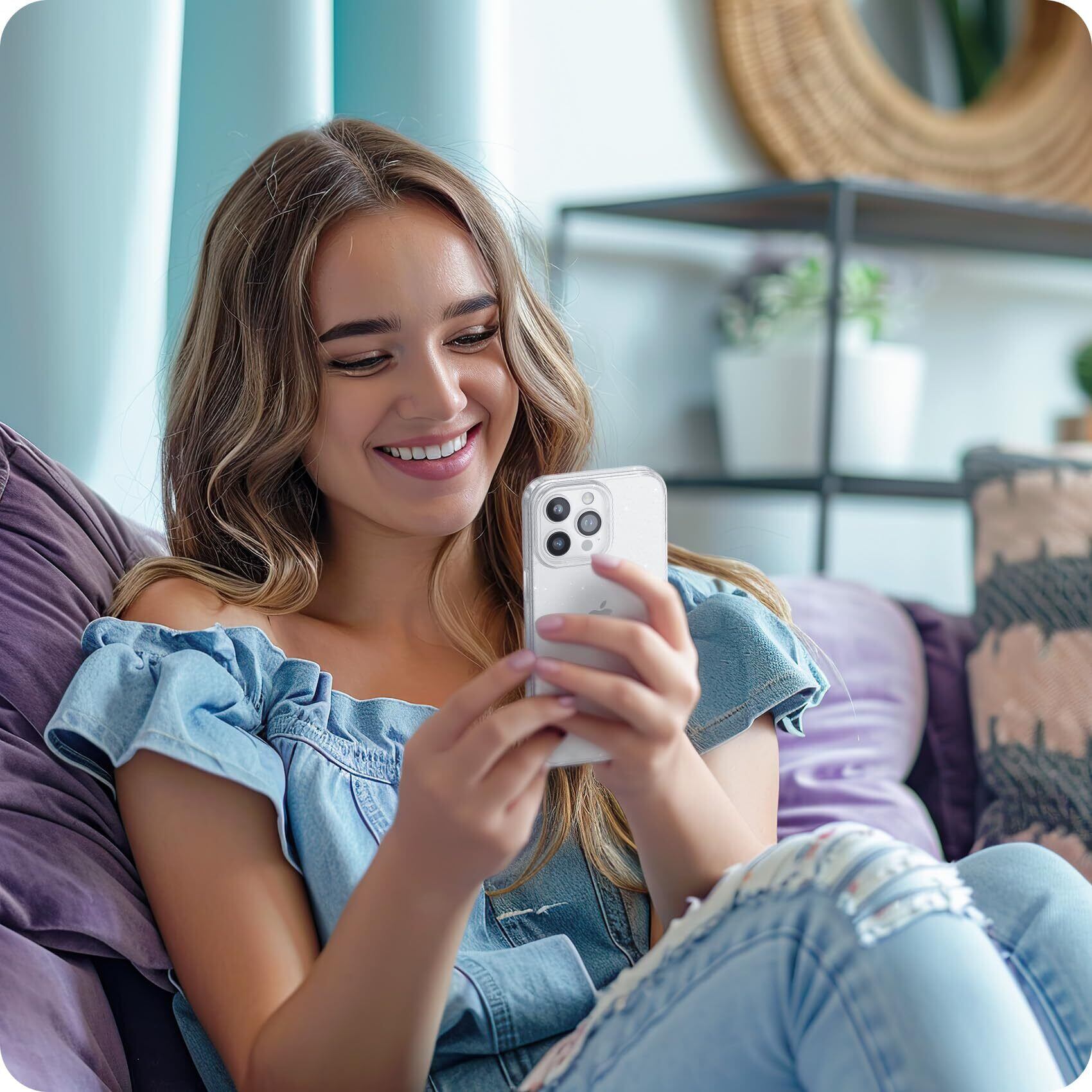 【キラキラデザイン】スマホケースの背面に輝くグリッターが施されており、スマホが常にピカピカと輝きます。これにより、大切なスマホがより一層魅力的でおしゃれになります。