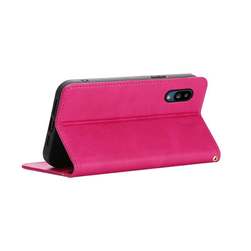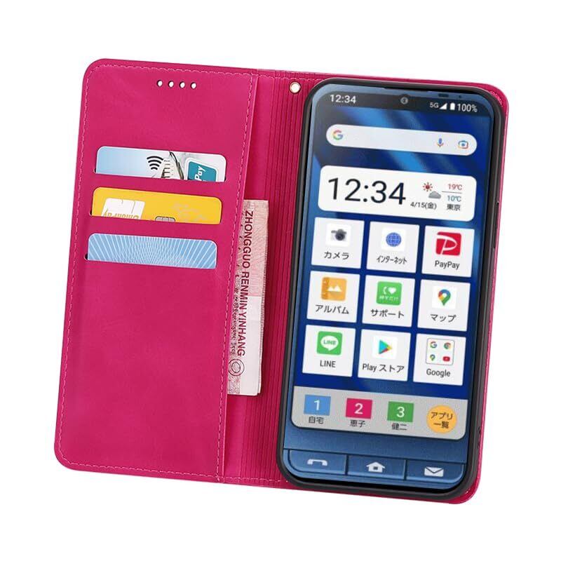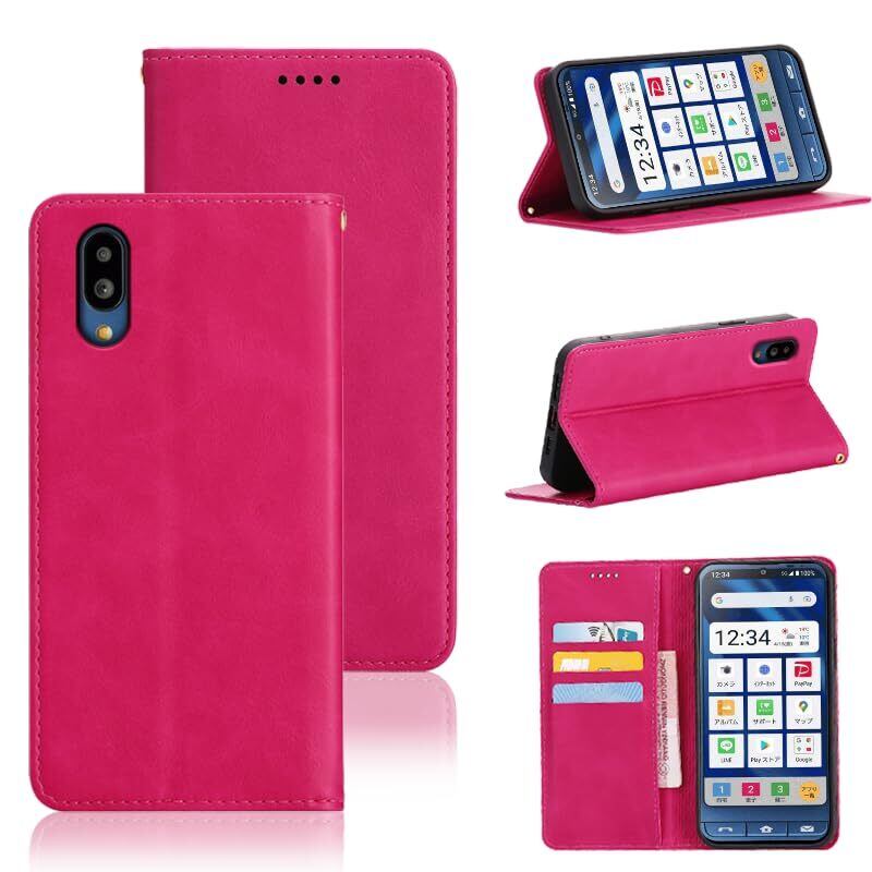 シンプルスマホ6 / シンプルスマホ7 ケース 手帳型 A201SH / simple sumaho6 /simple sumaho7/ BASIO active SHG09/ BASIO active2 SHG12 ケース 手帳型 カバー PUレザー カード収納 財布型 耐衝撃 ケース マグネット スタンド機能付き (ローズレッド)
