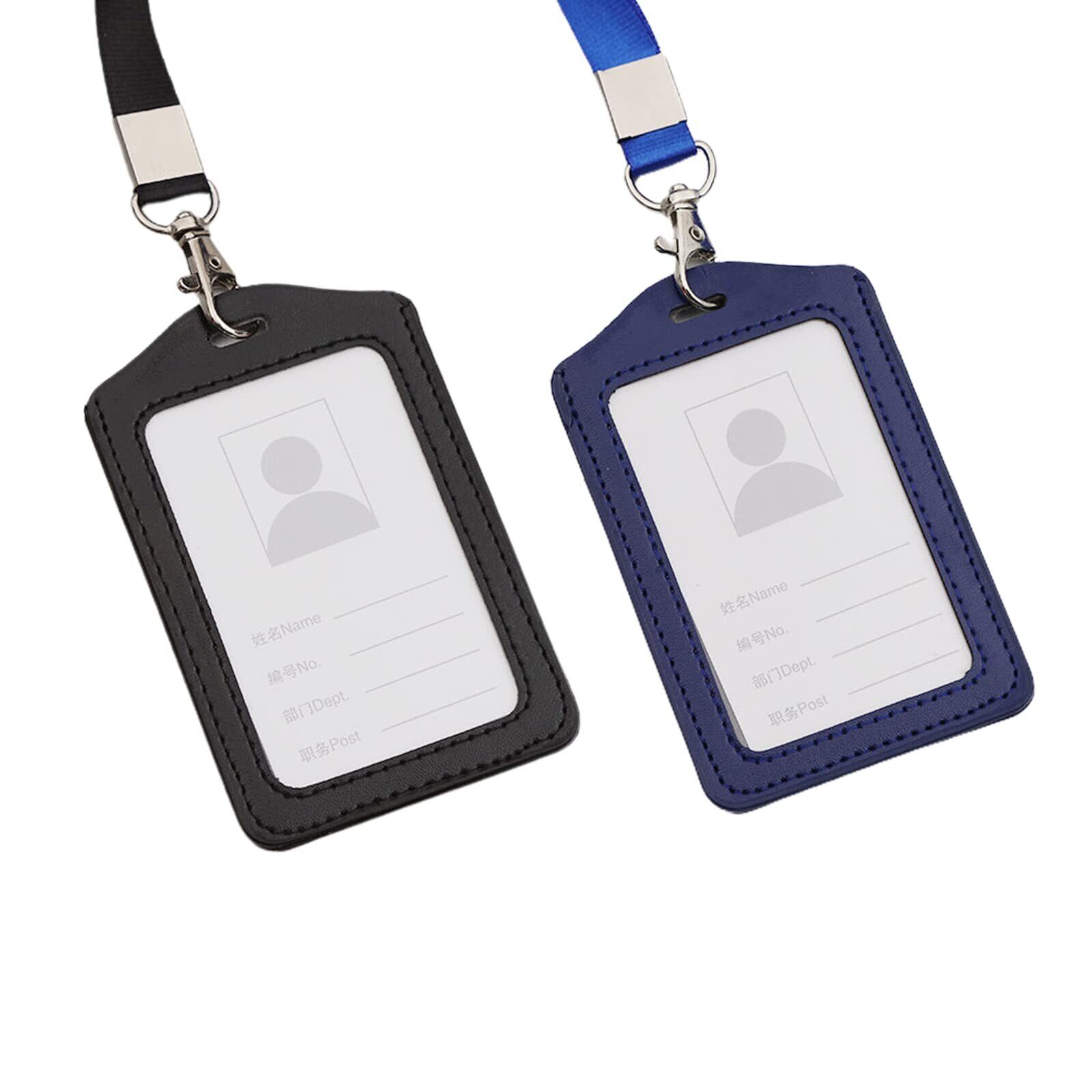 IDカードホルダー 縦型 2個 ネームホルダー 首掛け IDカードケース 定期入れ 透明 おしゃれ 社員証 名札 パスケース リール ネックストラップ付き(ブラック+ロイヤルブルー)