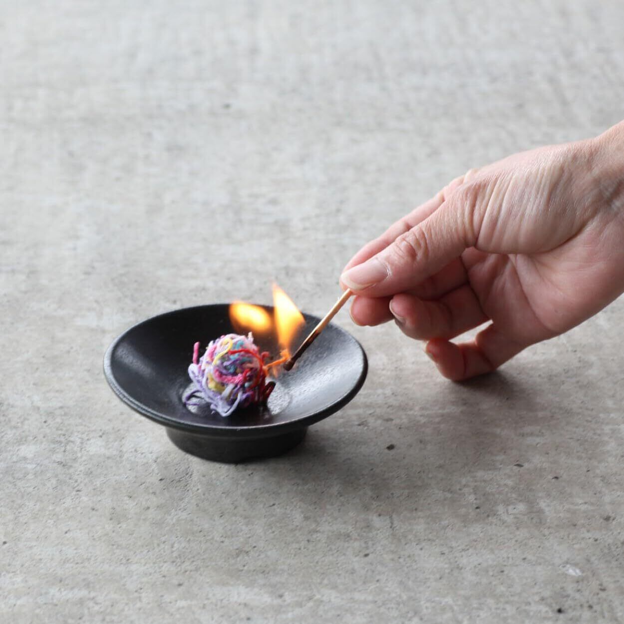 器とロウ糸とマッチ、送り火・迎え火を灯すのに必要なものがすべてセット, 現代のライフスタイルにあった、新しい迎え火・送り火, どこでも使えるコンパクトさは使う場所を選びません。, 燃焼時間は約3~5分, 安心の日本国内製