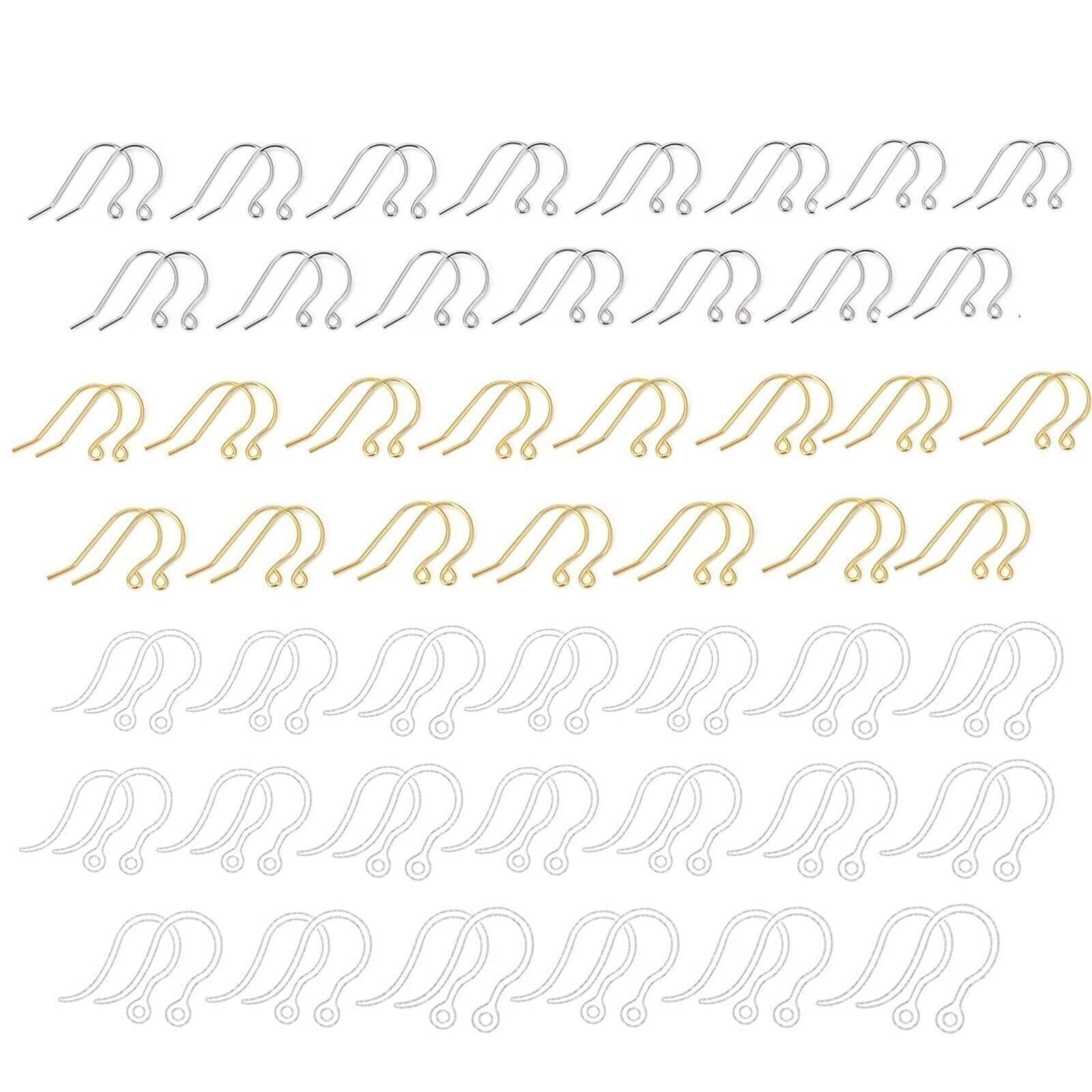 YFFSFDC サージカルステンレス 樹脂 ピアス フック 3種100個セット パーツ アレルギー対応 ジュエリー用 パーツ DIY材料 手作り( ゴールド シルバー クリア)