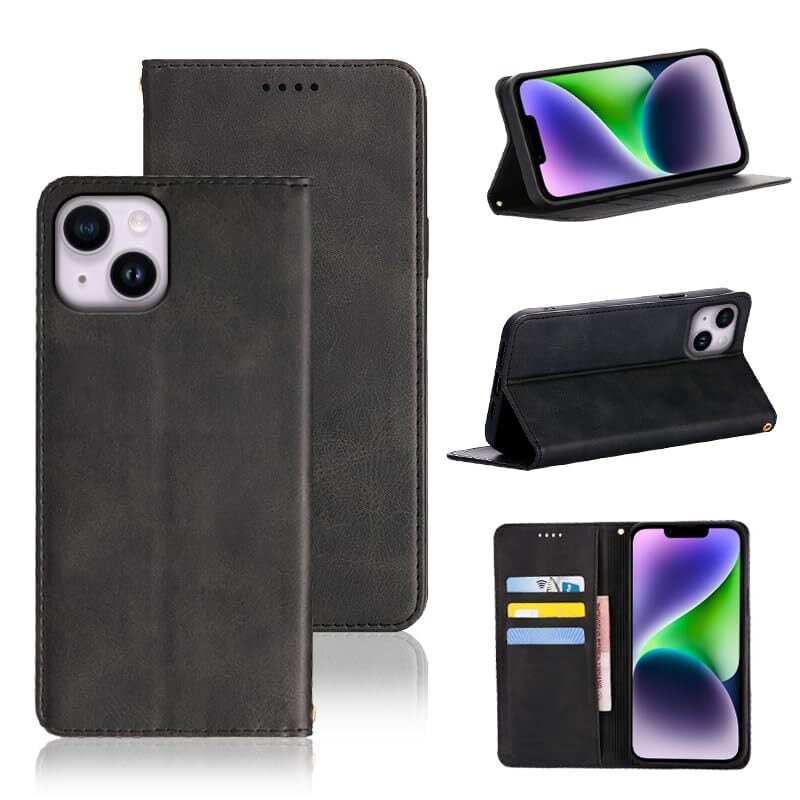 【在庫セール】iPhone 14 ケース 手帳型 iPhone14 手帳型 ケース カバー PUレザー カード収納 財布型 耐衝撃 ケース マグネット スタンド機能付き 5色 (iPhone14 ケース手帳型) (ブラック)