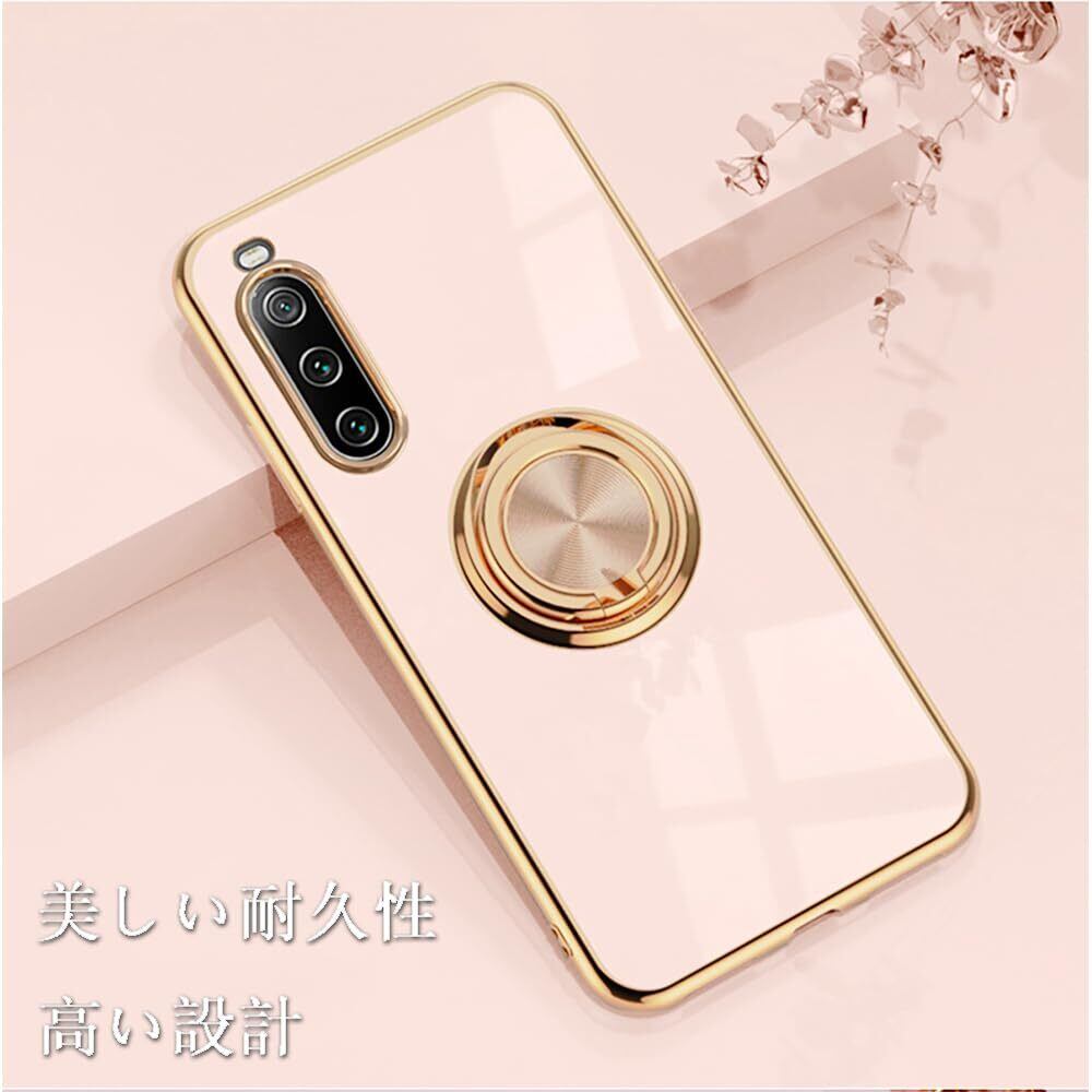 JOOBOY Xperia 10 V ケース リング付き SO-52D / SOG11 カバー メッキ加工 レンズ保護 tpu ソフト ストラップホール付き 耐衝撃 スリム おしゃれ スマホケース 携帯カバー Xperia 10 V メッキ加工 カバー (Xperia 10 V, ピンク)