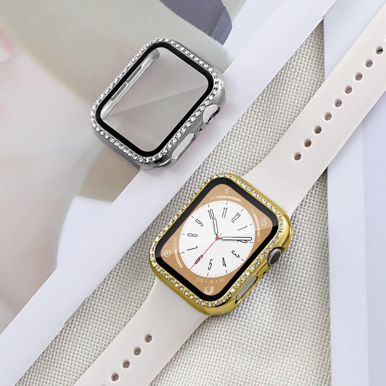 【2色セット】コンパチブル アップルウォッチ カバー 40mm、キラキラ、耐衝撃、全面保護、PC、コンパチブル apple watch カバー series 5 6 4 se、レディース/メンズ、コンパチブル apple watch ガラスフィルム、コンパチブル アップルウォッチ スクリーンプロテクター ケース(シルバ-ゴールド)