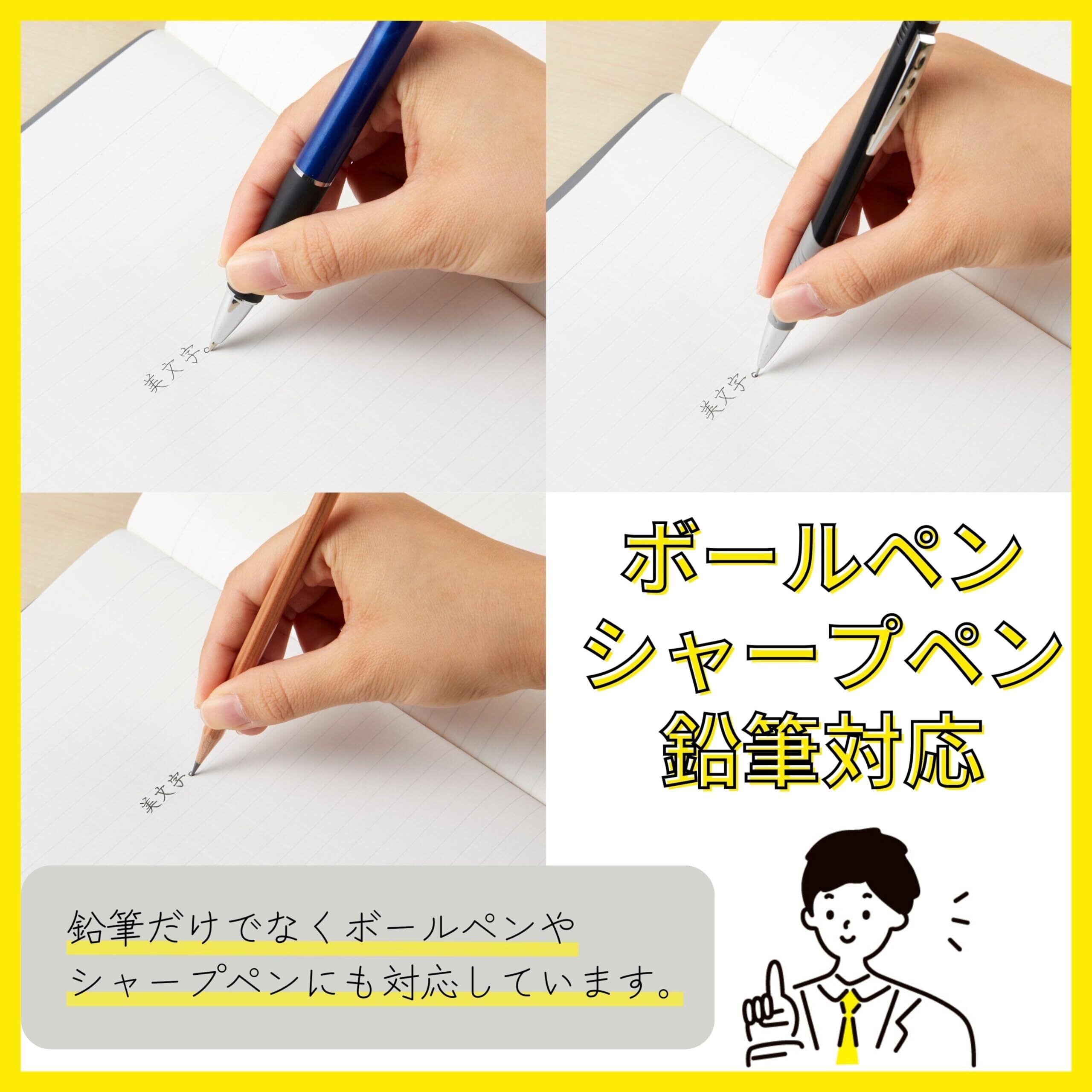 表面のザラザラ加工が走り書きを防止、丁寧な文字が書けるので、文字の筆圧や形が整いやすいです。