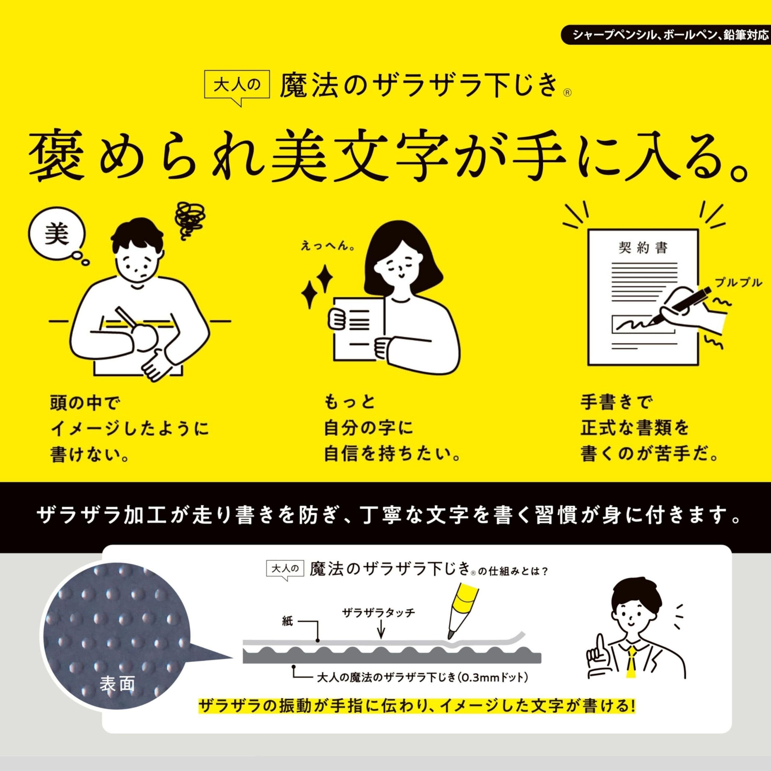 特殊印刷のザラザラ加工が施された文字を丁寧に書くための下じきです。