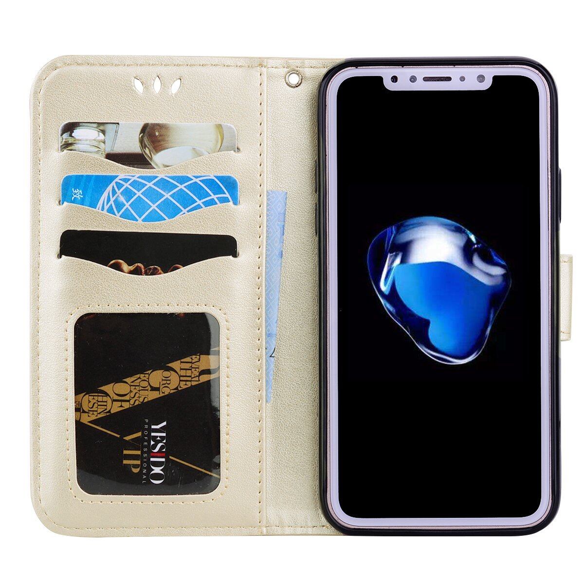 【特価セール】iPhoneXR ケース 手帳型 アイフォンXR カバー 6.1インチ 手帳型ケース 可愛い花柄 【COCOMO】 カード収納 ストラップ付き 選べる スタンド機能付き マグネット付き 財布型 耐衝撃 軽量 全面保護 (iphone XR, A4-ゴールド)
