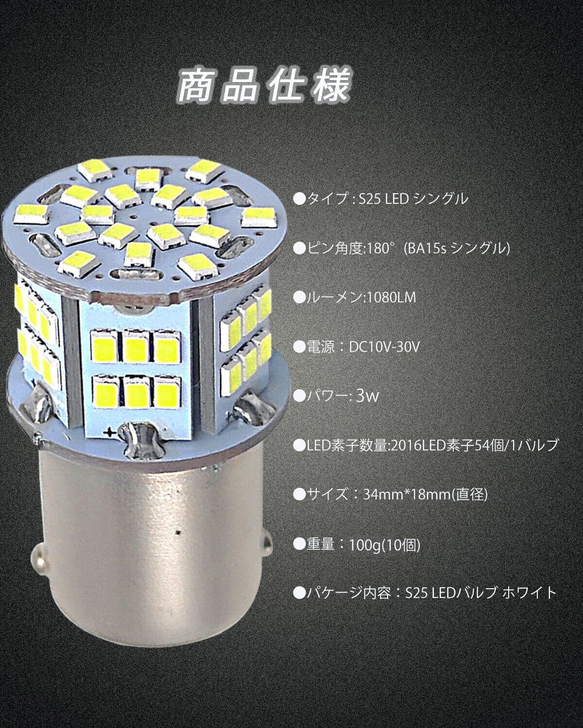 S25 LED シングル ピン角180度 (P21W 1156 G18 BA15S) 24V 12V 爆光 ホワイト バックランプ トラック サイドマーカー マーカー球 ウインカー ポジション LED ライト 10個セット