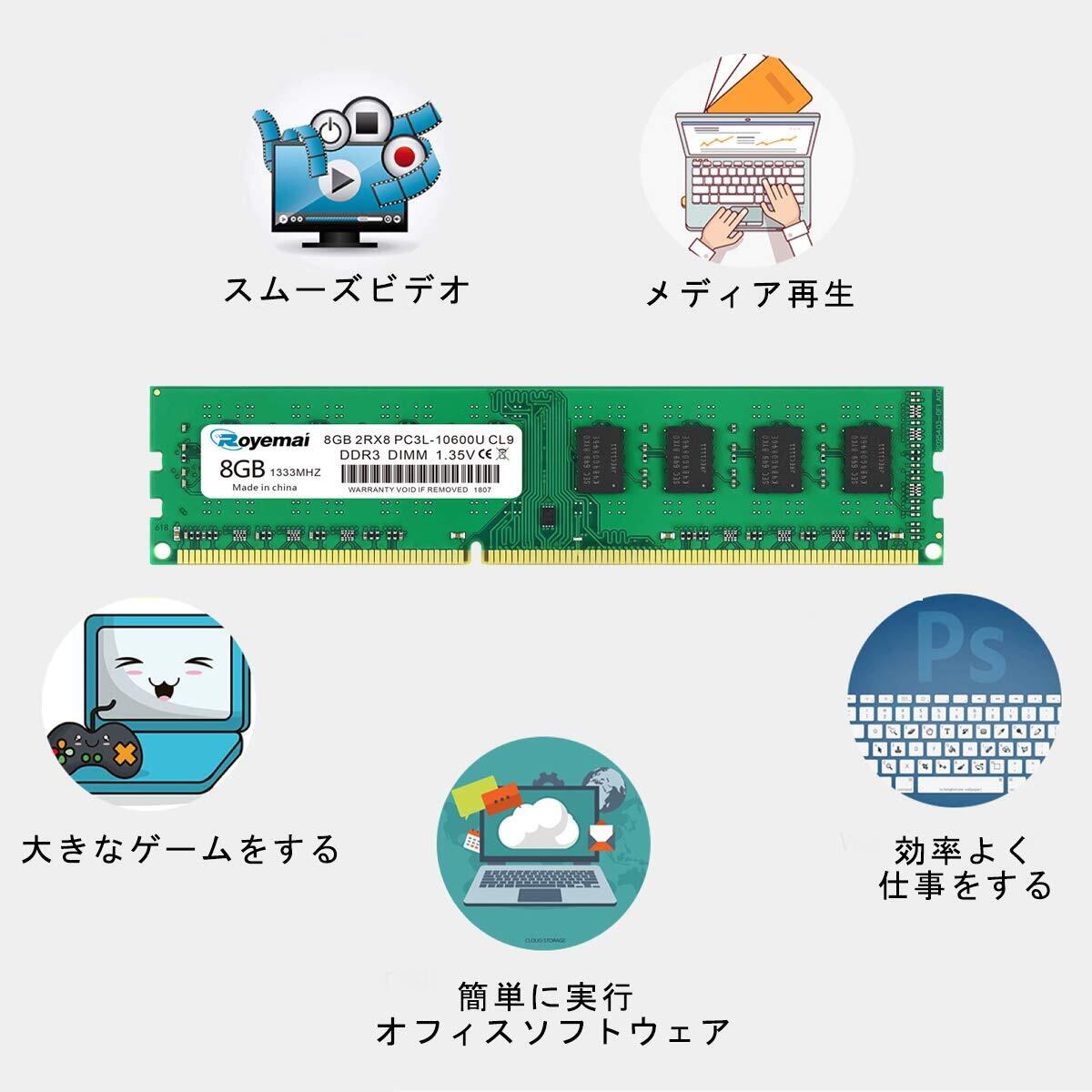 【新春セール】8GBx2枚 DDR3L 10600U 1333MHZ デスクトップPC用メモリ 1333 1.35V (低電圧) 16GB PC3L 10600 240pin CL9 Non-ECC