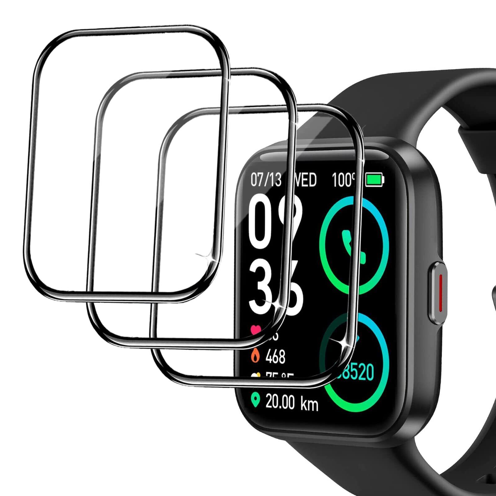 Lamsaw for Fanonon スマートウォッチ 保護フィルム,【3枚セット】全面保護 フィルム 対応 Fanonon ID208 1.70" スマートウォッチ/Gydom ID208 / Aeac ID208BT / Tensky ID208 3D全面保護 フロート高感度タッチ高透過率 水防指紋防止 (3枚)