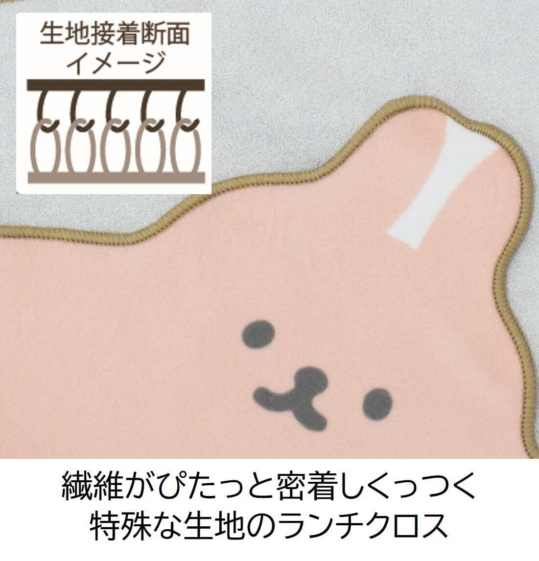 大人気の不思議ないきものたち、ムームーフレンズ。ももうさのランチクロス。結ばず簡単に包めます。重ねると張り付く特殊生地を使用。繊維どうしがぴたっと密着します。サイズや形状に関係なくぴったりフィットします。34×34cm。お弁当のランチクロスとして、ペットボトルの結露防止として、ステンレスボトルの傷予防として。中国製。