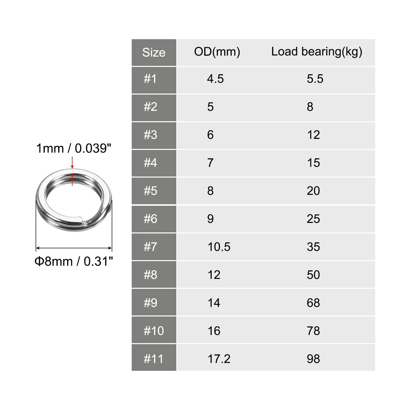 PATIKIL 1.0mm x 8mm 釣りスプリットリング 50個 304ステンレス鋼 ダブルフラットリングルアーコネクタ 塩水 淡水用