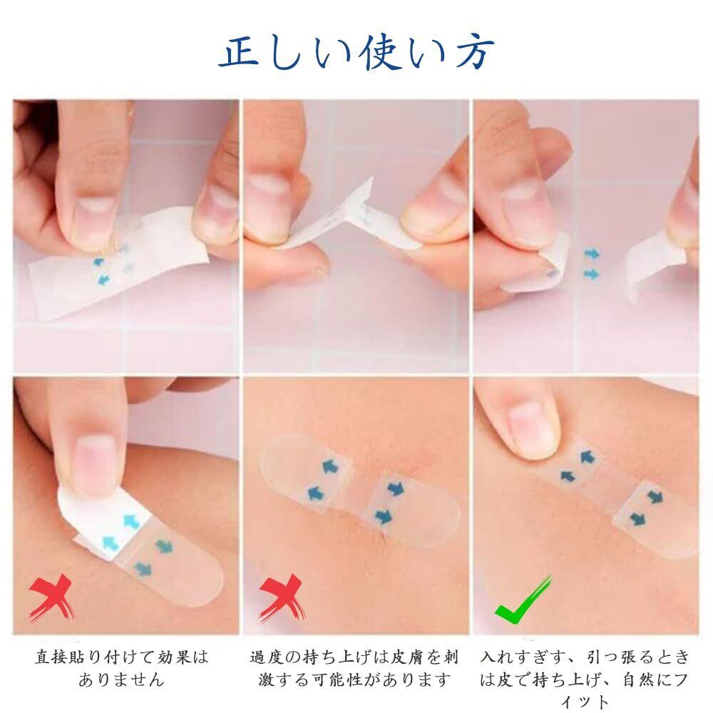 【目立たない透明テープ】透明で伸縮性に優れたリフトアップテープです。肌に馴染みやすく目立たないため、どんな場面でも気軽にご使用いただけます。