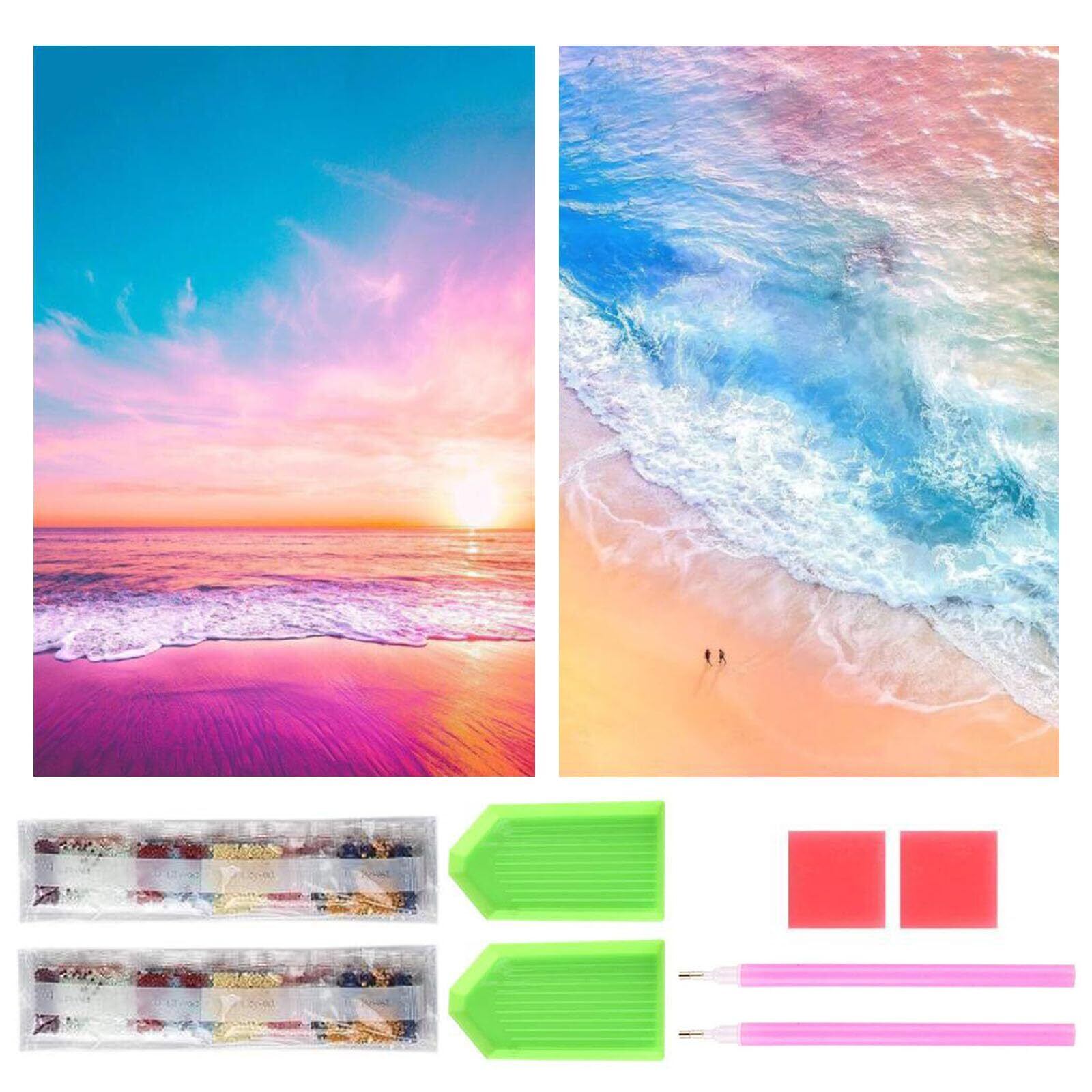 【2022最新】サムコス ダイヤモンドアート キット ダイヤモンドの絵画 2個セット きれい 全面貼り付け ダイヤモンドアート 塗装 初心者 大人の子供 DIY 手芸キット 芸術品 家の壁の装飾(海辺2)