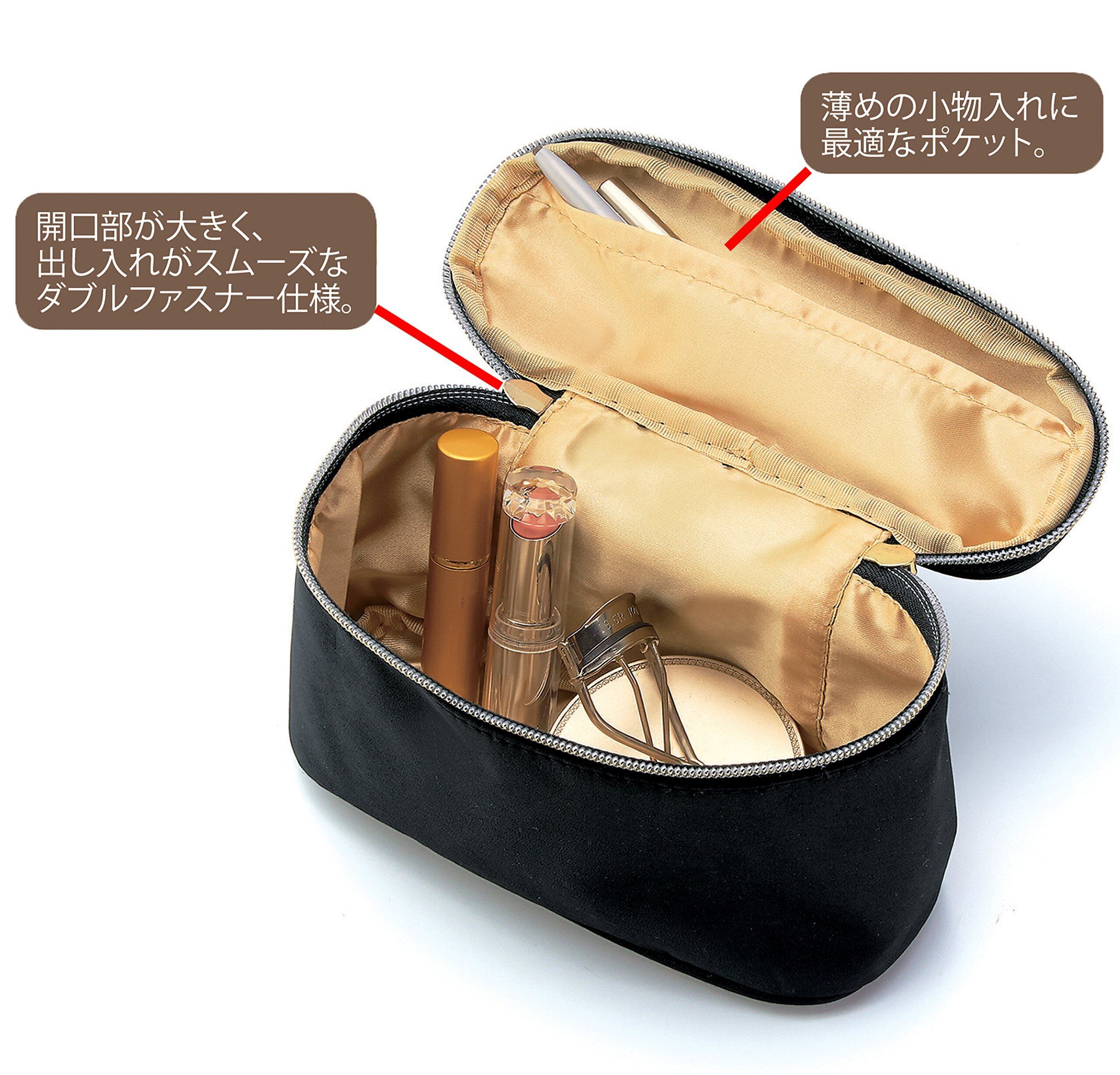 ゴールドの内布が美しく、高級感を漂わせる、便利なスマートバニティ。