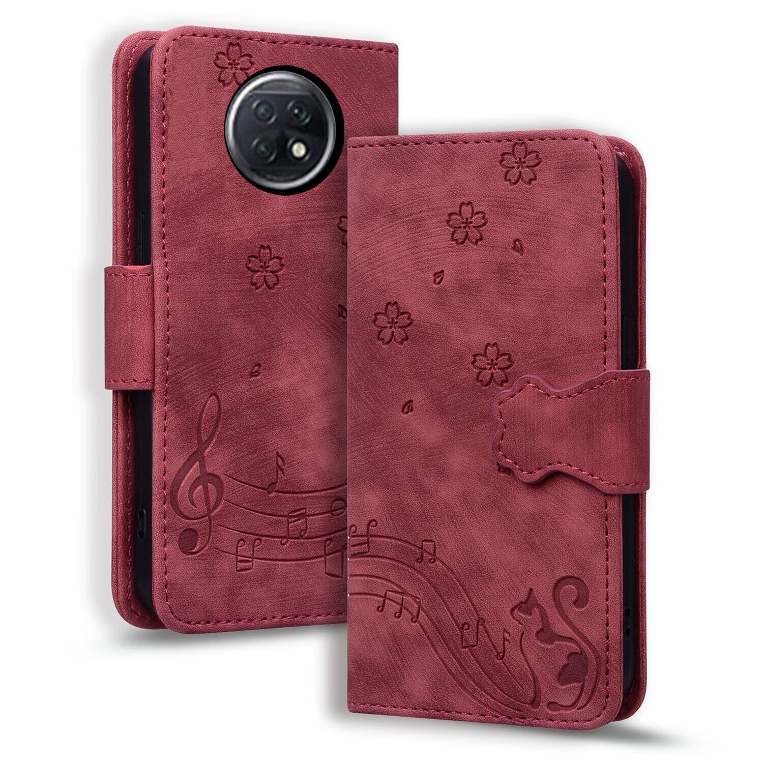 Xiaomi Redmi Note 9T ケース 手帳型 TEDTIKJT シャオミ レッドミー ノート9t ジェーイー ケース FOR Xiaomi Redmi note 9T ケース手帳型 通用ケース 手帳ケース スマホケース 高级PU レザー 財布型 360度保護 耐衝撃 内蔵マグネット 携帯カバー スタンド 音楽子猫のパターン 赤