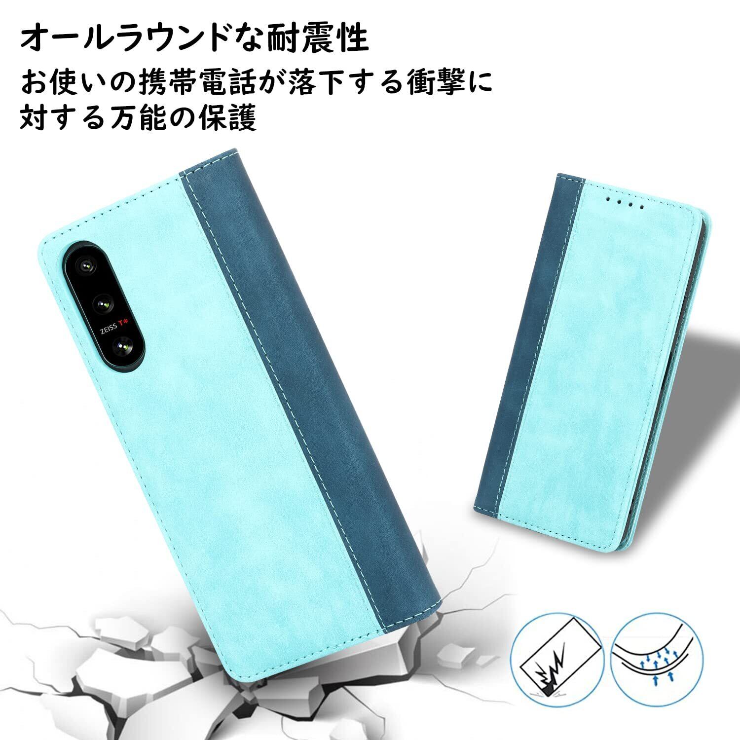【2022最新】Havaya Xperia5 IV ケース Xperia5 IV カバー SO-54C ケース 手帳型 SOG09 docomo A204SO 耐衝撃 SONY ソニー エクスペリア5iv 第4世代 SoftBank XQ-CQ44 楽天モバイル au マグネット式 カード収納 レザー-ライトブルー+ダークブルー