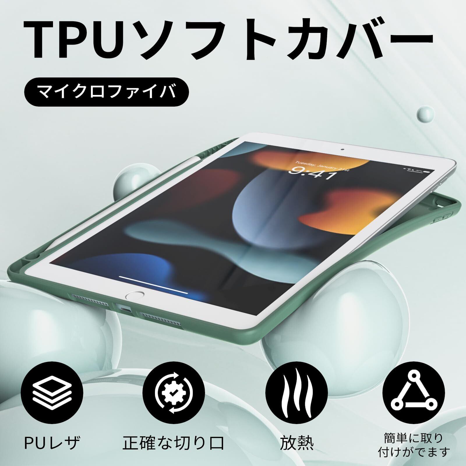 【新着商品】zoyu 対応iPad 9世代 ケース iPad 10.2インチ ケース 第9/8 /7世代 2021 2020 2019 軽薄 衝撃吸収 ペン収納 三つ折スタンド オートスリープ機能 高級PUレザー TPU パイングリーン