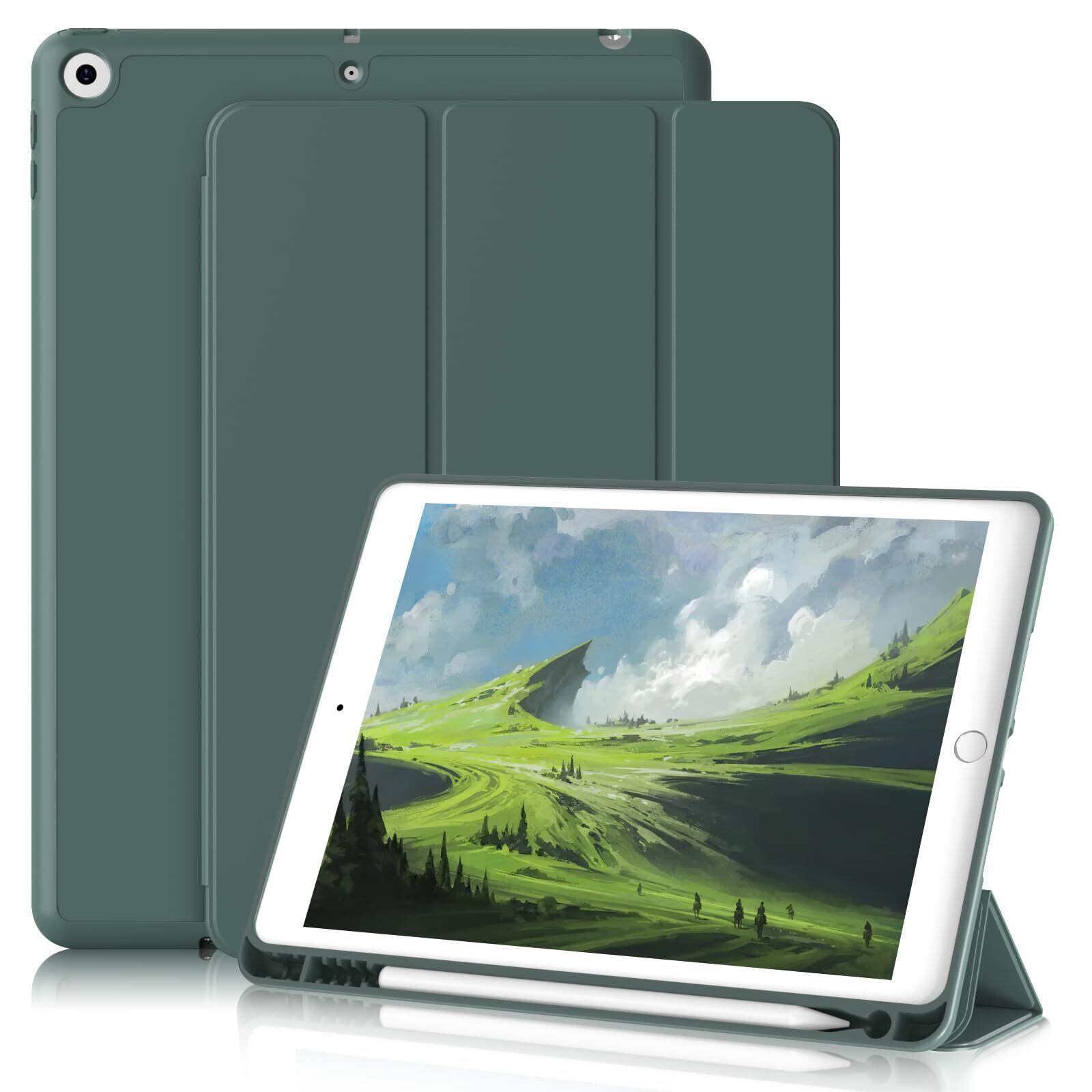 zoyu 対応iPad 9世代 ケース iPad 10.2インチ ケース 第9/8 /7世代 2021 2020 2019 軽薄 衝撃吸収 ペン収納 三つ折スタンド オートスリープ機能 高級PUレザー TPU パイングリーン