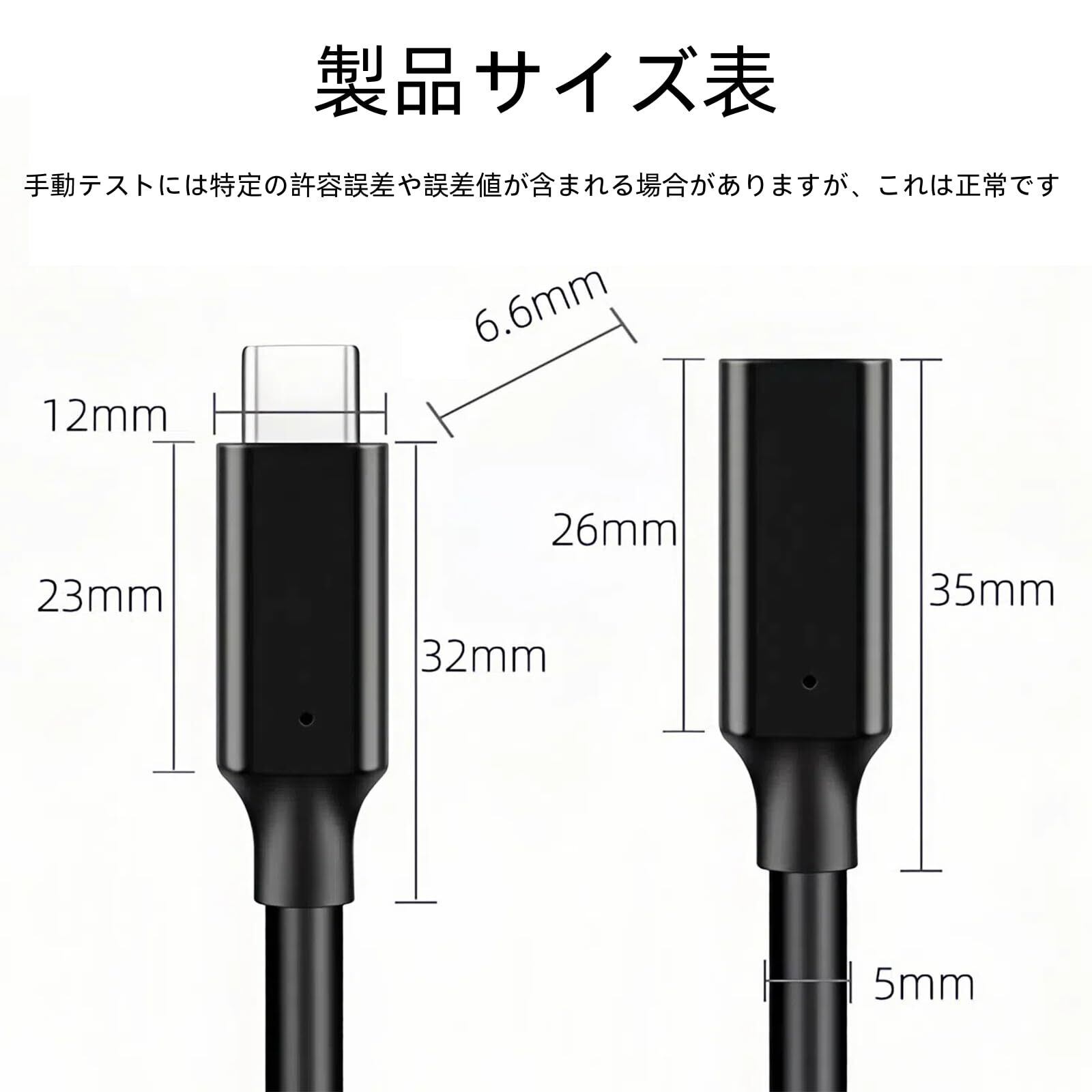 Renvmexy USB C 延長ケーブル, Type-C オス-メス 延長ケーブル, 10Gbps USB 3.2 Gen2 高速データ転送, 4Kビデオ出力, PD 100W 急速充電 対応, スマホ/タブレット/ノートPC対応(5 meters)