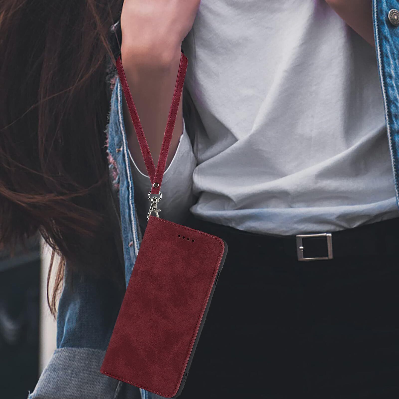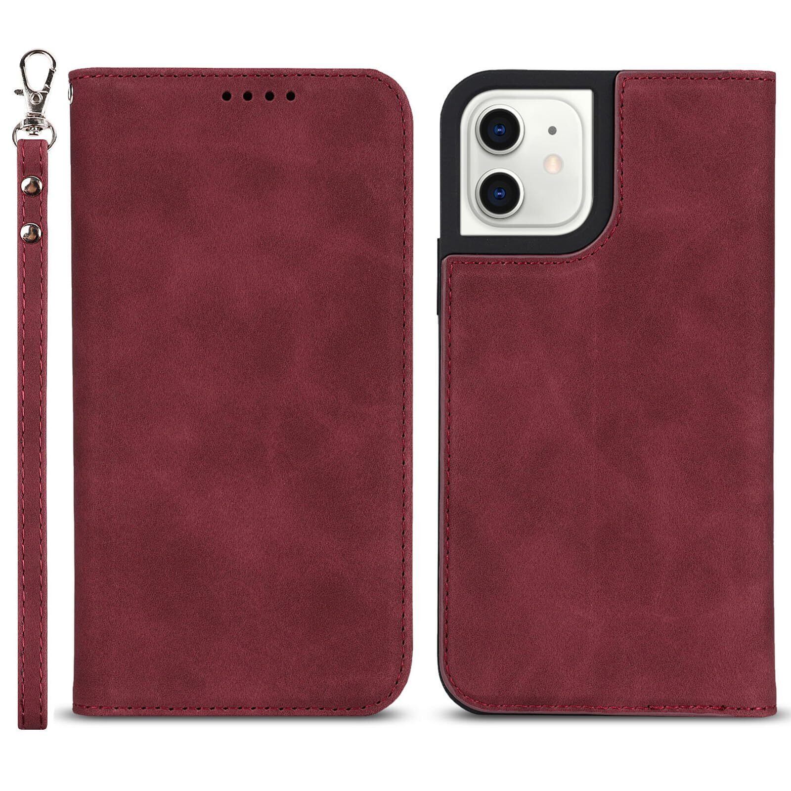Havaya iPhone11ケース iphone 11 ケース アイフォン11 ケース スマホケースiphone11 手帳型 米軍MIL規格の保護 ストラップ カード収納 レザー スウェード(アイフォン11 /あいふぉん11/いphone11/アイホン11 6.1インチ対応)-ワインレッド