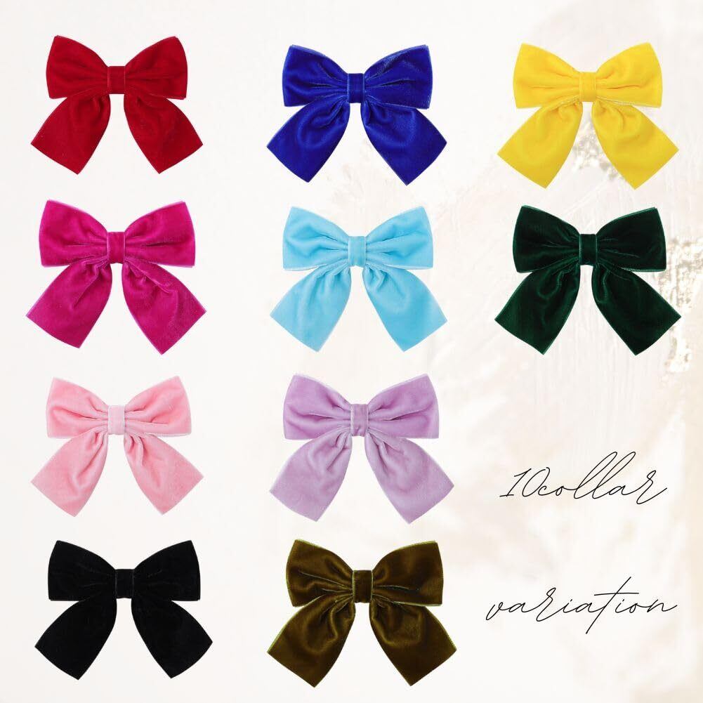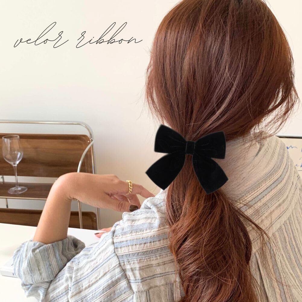 【数量限定】ベロア リボン バレッタ ヘアアクセサリー 2点セット(クリップ) (イエロー)