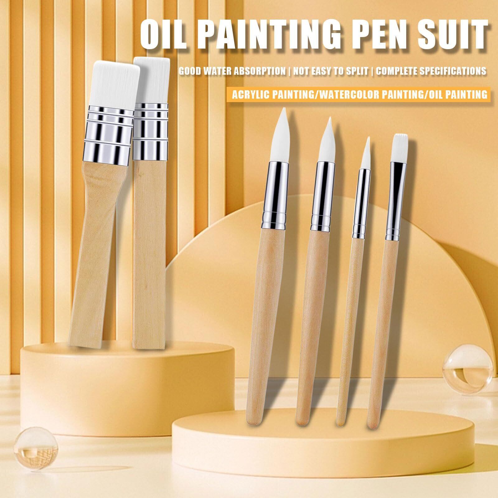【2022最新】画材筆 ペイントブラシ 6本セット 水彩筆 油絵筆 アクリル筆 画筆 絵筆 絵の具 油絵 水彩 面相筆 丸筆 平筆 平型筆 多用途筆 アクリル絵の具 水彩画 筆 短毛筆 絵の具セット 油絵用筆 多用途 携帯便利