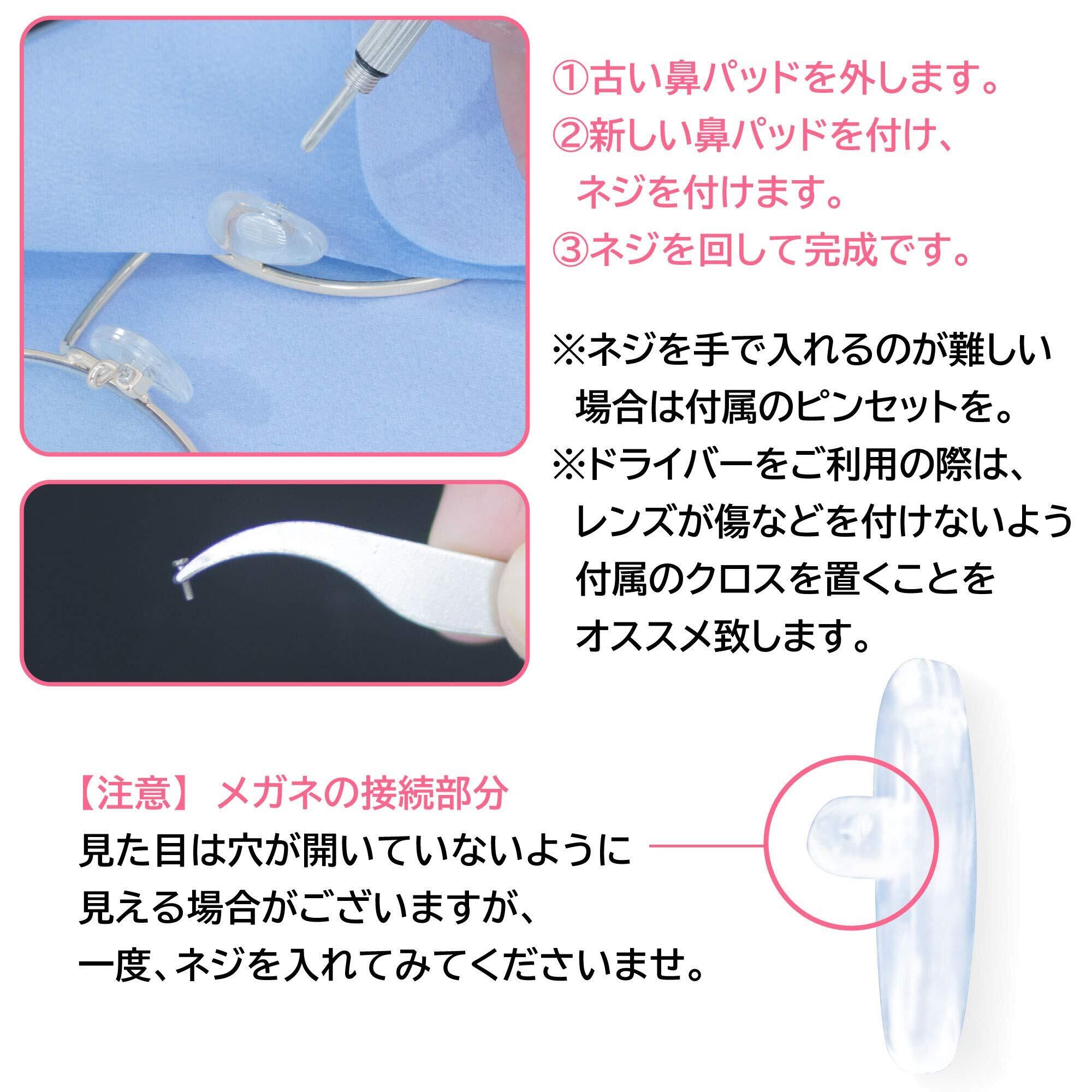 1枚目もしくは7枚目の1部の画像は取扱い説明書の画像になります。◆このタイプの取付 交換 はピンセット・ドライバーが非常に便利なアイテムになります。 メガネの鼻パッド パッド 交換 用 当て