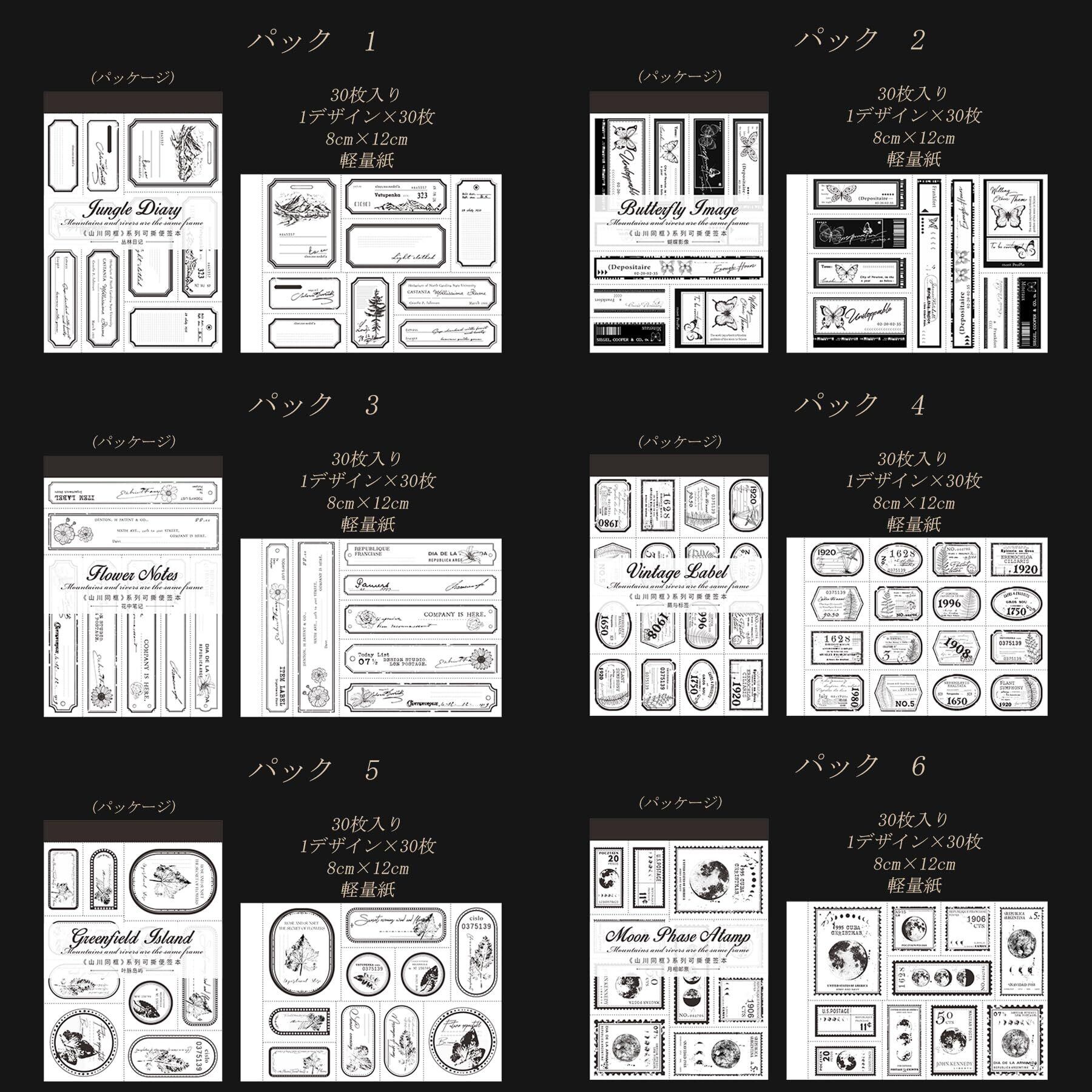 内容:6パックセット、合計180枚。(各パックは1デザイン×30枚の30枚入りです)