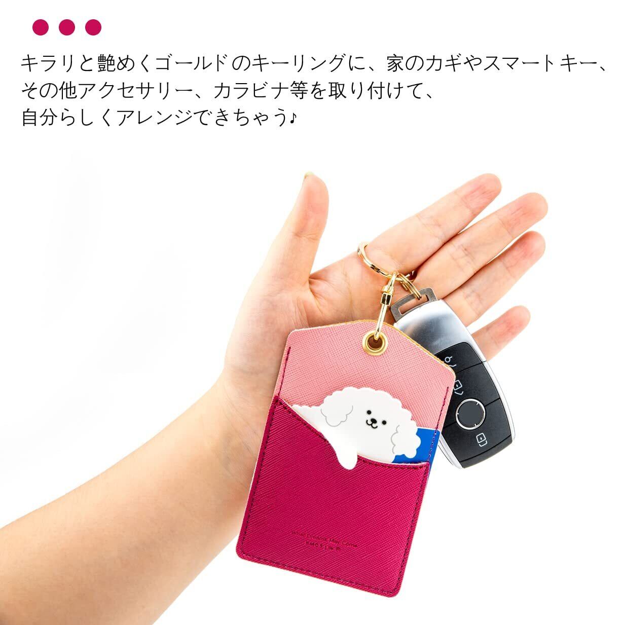 【数量限定】[H HARUCO] 可愛い アニマル 定期入れ 子供 キーリング パスケース レディース 縦型 バッグチャーム PU レザー 革 キャラクター 9種 (プードル)