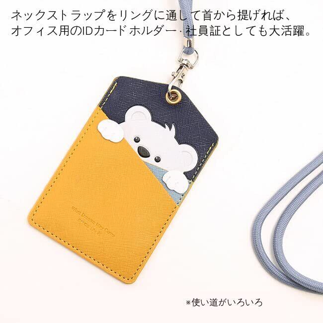 便利、使いやすい、アニマルがちょこんと手を掛けた、フロントの斜めフリーポケットには、使用頻度の高いクレカやポイントカードを2枚収納可能、 背面のクリアポケットに交通系ICカード、カードキーや定期券を入れておけば、定期入れ 駅の改札やバスへの乗車がスムーズ