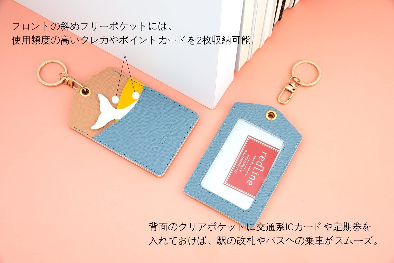 幅広く利用シーン、ケースの生地は、汚れや水滴もサッと拭き取れるPUレザー素材が使い勝手がいい、またネックストラップをリングに通して首から提げれば、オフィス用のIDカードホルダー・社員証としても大活躍