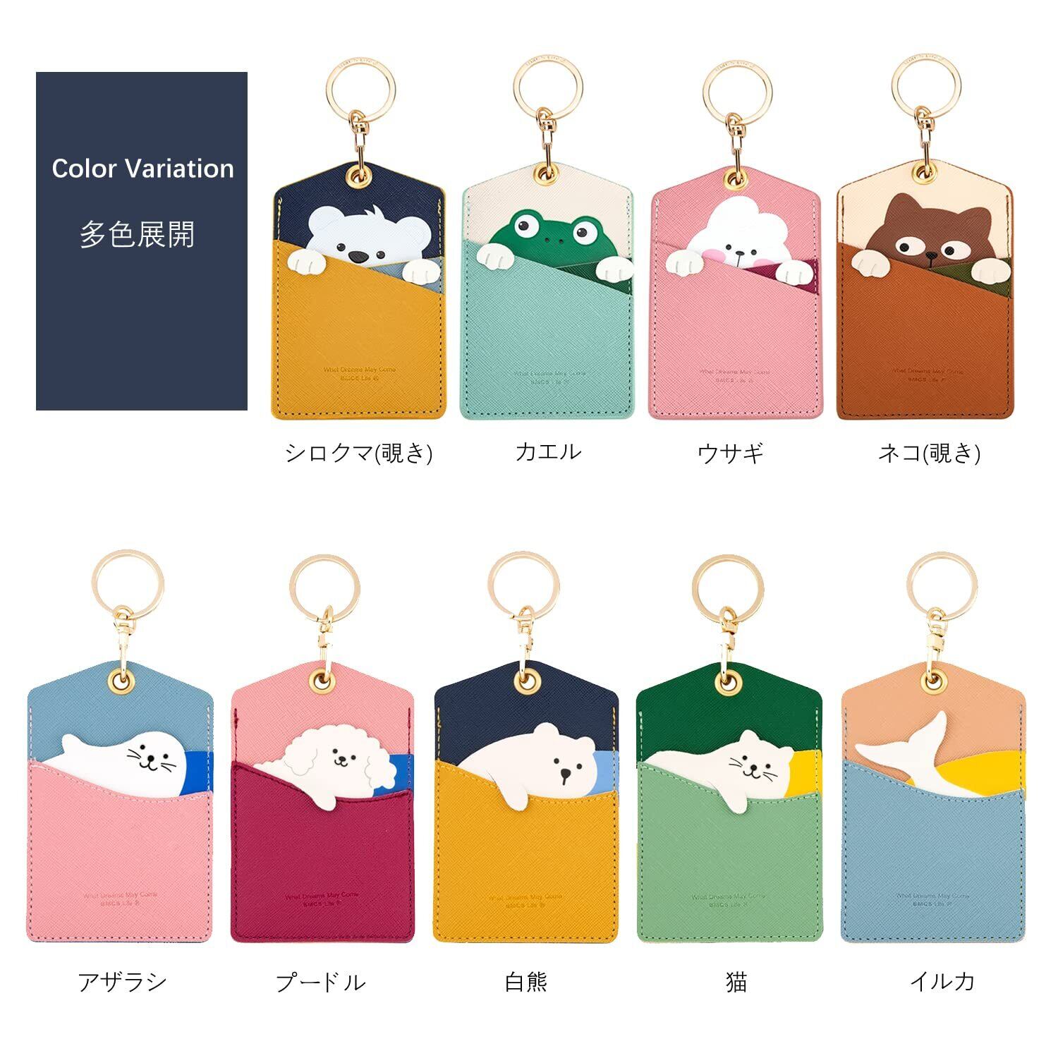 かわいいデザイン「縦型 アニマル パスケース キャラクター」ポケットからひょっこり顔を覗かせる動物たちがとてもキュート、見る触るたびに癒され!可愛いパスケース レディース バッグチャーム としてもお薦め