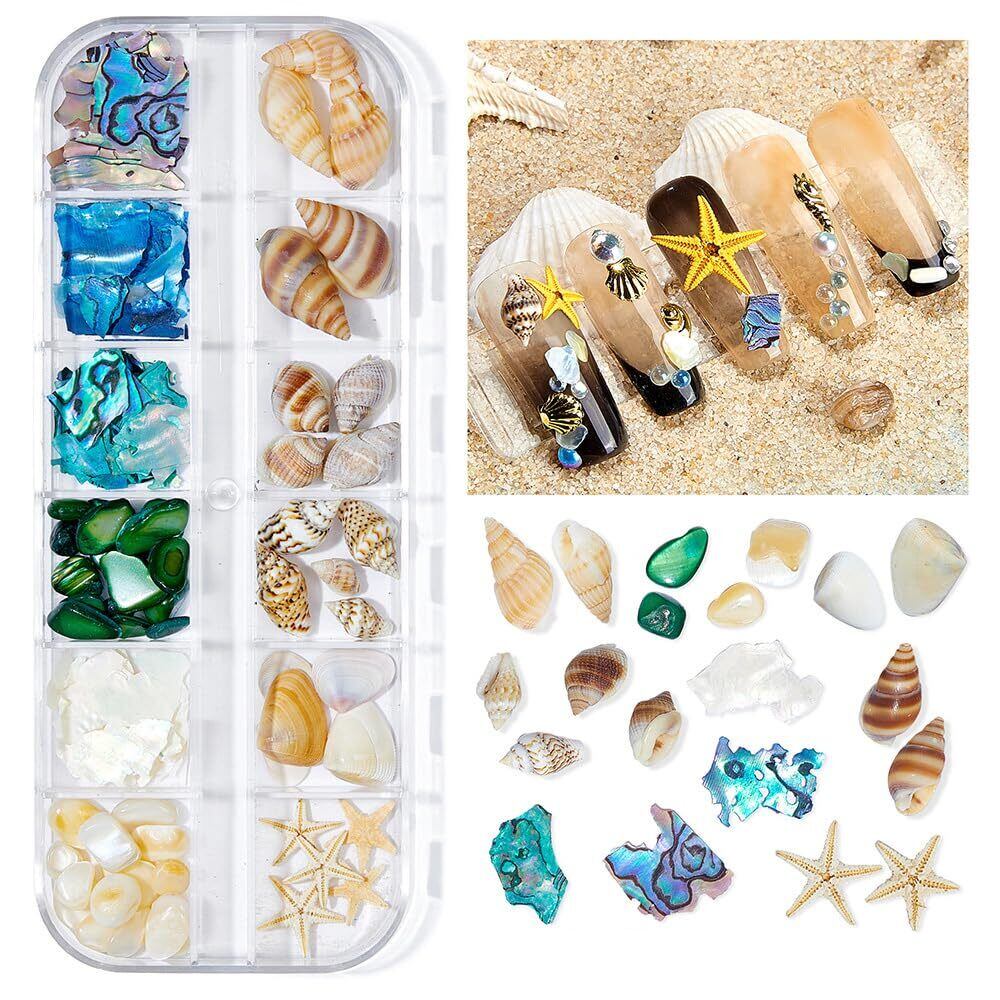 12種類のスタイルから選択でき、新しい夏の海洋スタイルのネイルアート装飾は、新鮮な夏の感覚をもたらします。それぞれのスタイルには12個の小さな格子があり、12種類の爪の部品が入っています。