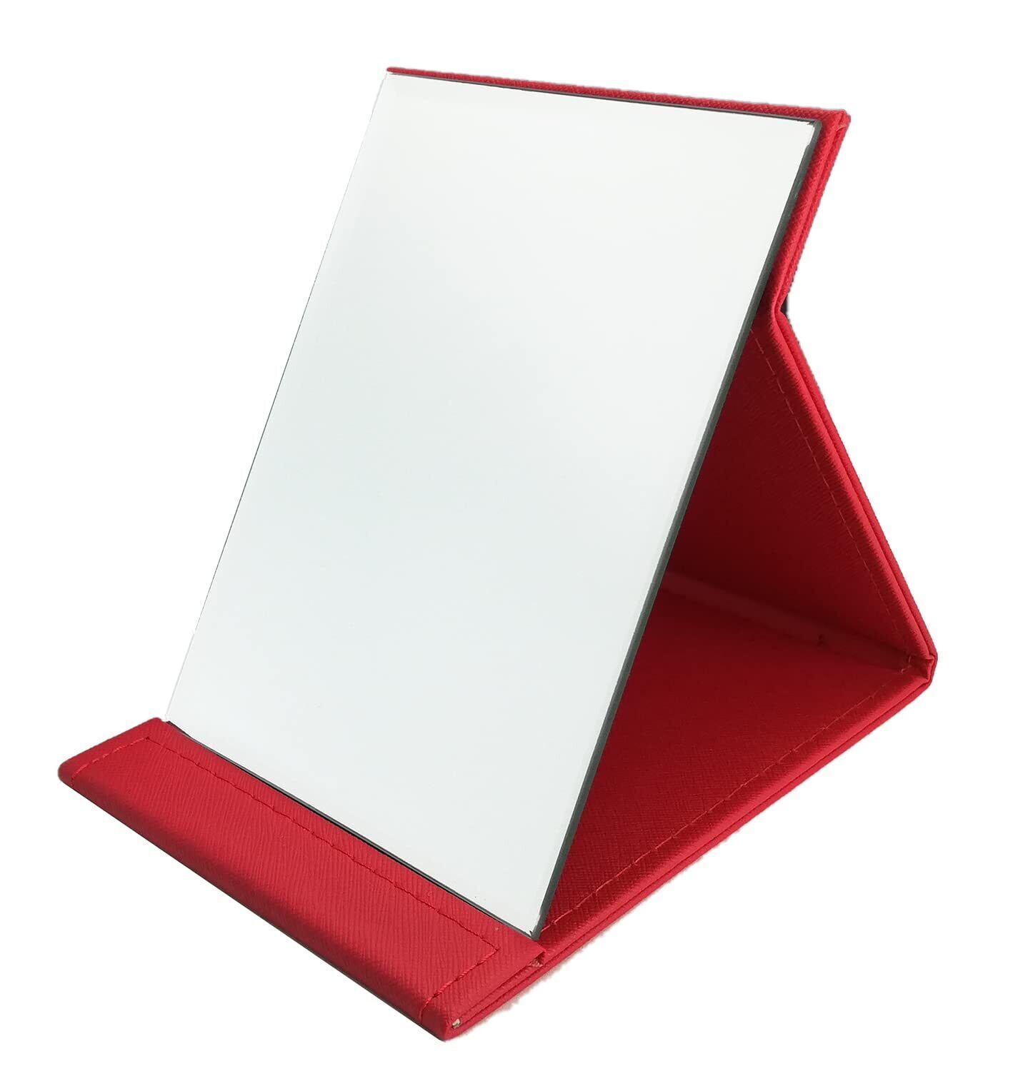 【数量限定】富士スカイ 鏡 卓上 手鏡 折りたたみ カバー材質に自信アリ! Lサイズ(25.7×18.0cm) レッド