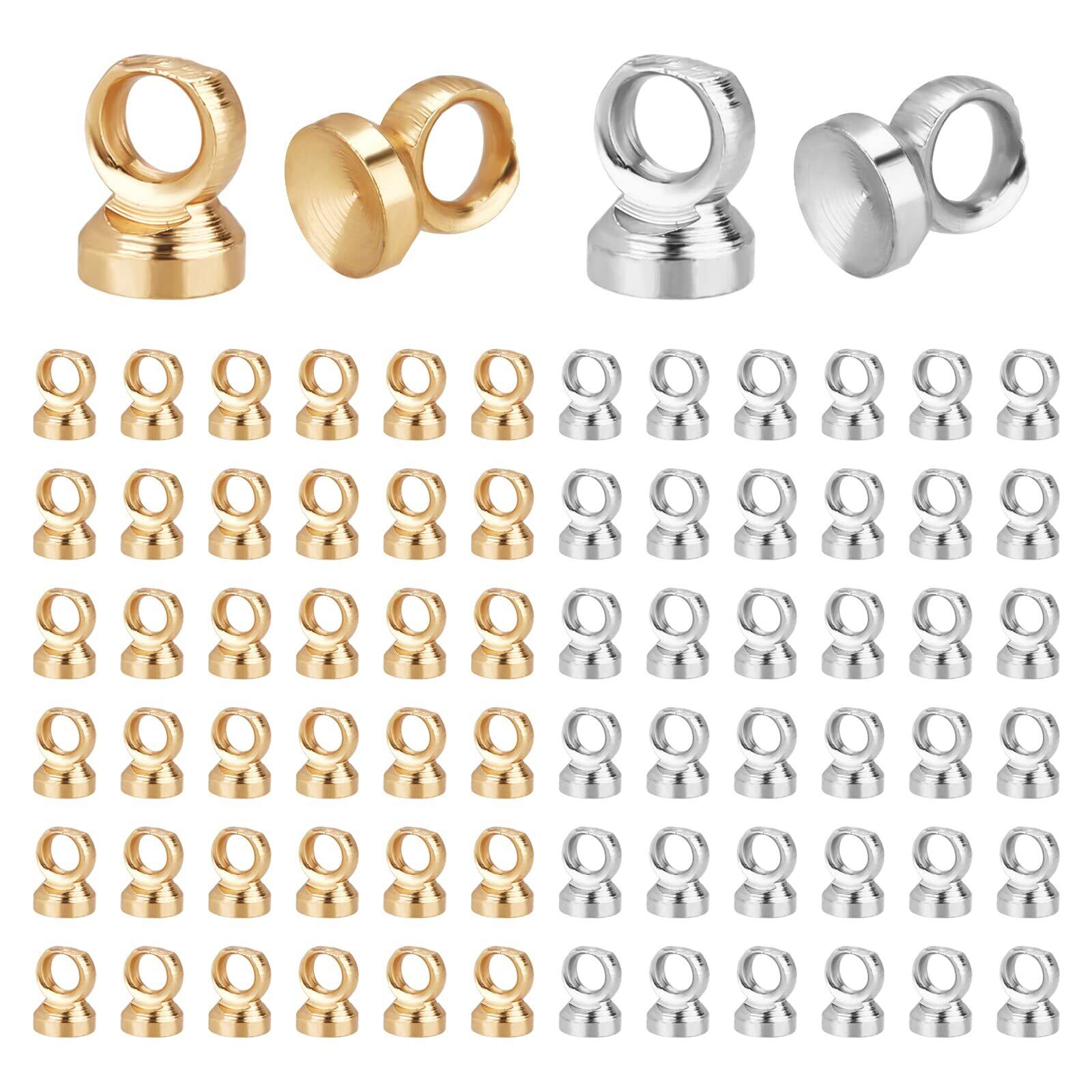 【特価商品】PH PandaHall 約200個セット ヒートン ヒートンキャップ ビーズキャップ 2色 ピンなし カン付き イヤリングパーツ レジンアクセサリー 丸ヒートン 接合金具 アクセサリーパーツ チャーム取付カバー ペンダント接続金具 ハンドメイド 手芸用品 クラフト 金具 ゴールド シルバー ケース付き