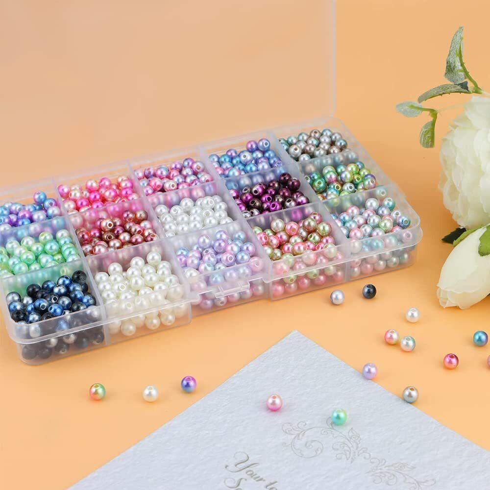 【人気商品】サムコス アクセサリーパーツ パールビーズ 15色セット 光沢 小さな 丸玉 カラーパール ビーズ 素材 手芸材料 DIY用 手作り ジュエリー用 混合色 箱入り 約1200個 6mm