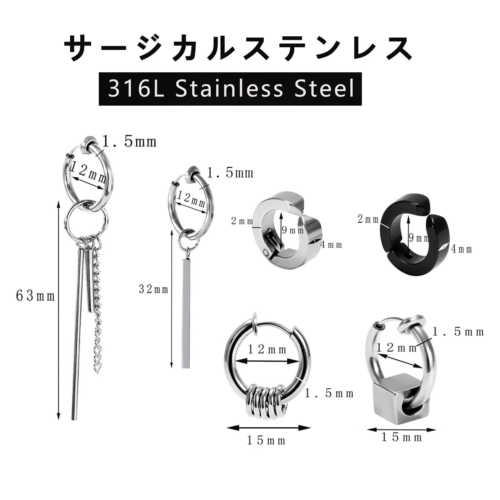 【アレルギー起こしにくい素材】イヤリングの素材はステンレスです。ステンレスはアレルギー起こしにくい素材で、金属アレルギーの方にも安心してご使用いただけます。ステンレスは他の金属と比べ、錆びと変色しにくく、硬くで、手入れも簡単です。