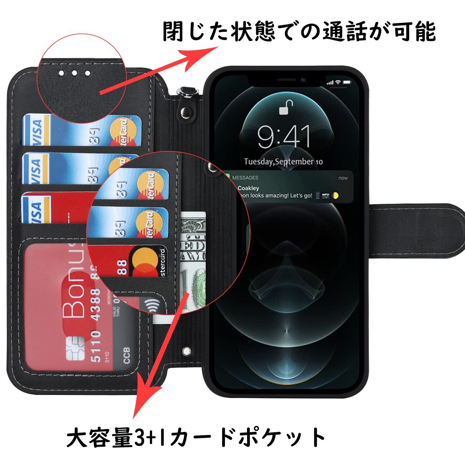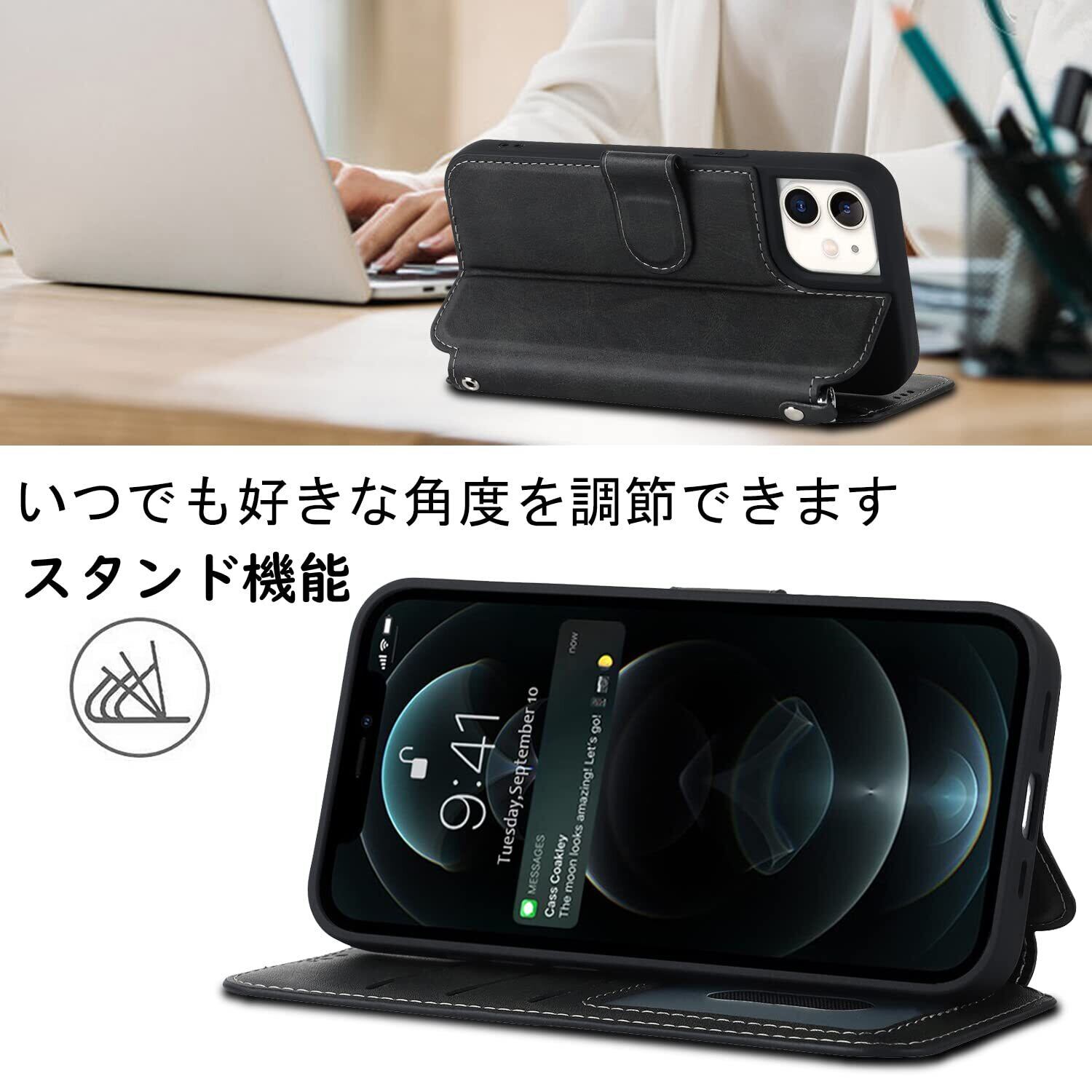 Havaya iPhone12 ケース iphone12pro ケース あいふぉん12ケース スマホケース iphone 12 米軍MIL規格 軽薄 手帳型 ストラップ 耐衝撃 レンズ保護(アイフォン12 /あいふぉん12プロ/いphone12/アイホン12プロ 6.1インチ対応)-ブラック