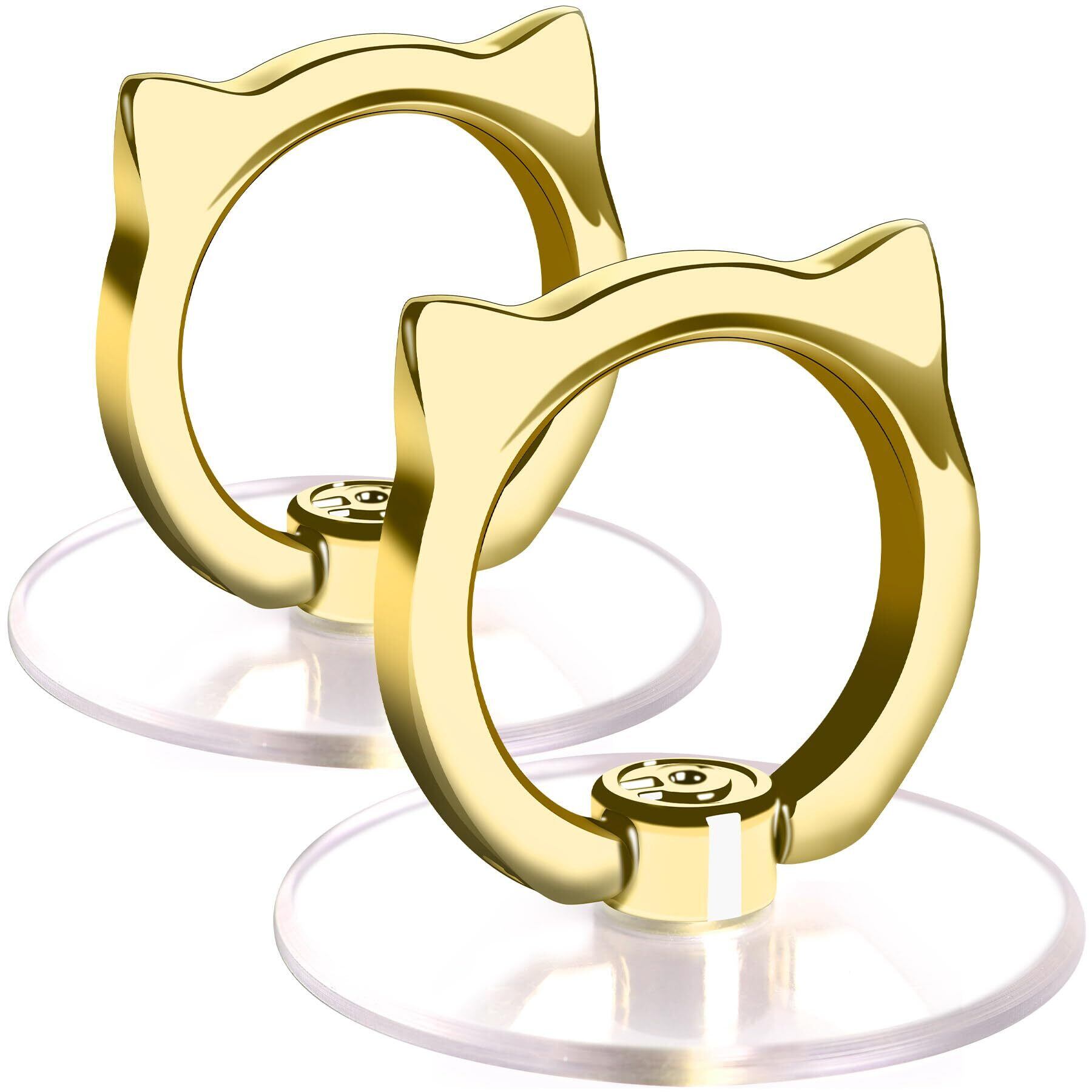 猫 透明 スマホリング ネコ 落下防止リング ホールドリング 薄型 スタンド 車載ホルダー 360回転 iPhone/Android各種他対応 (猫型2個金)