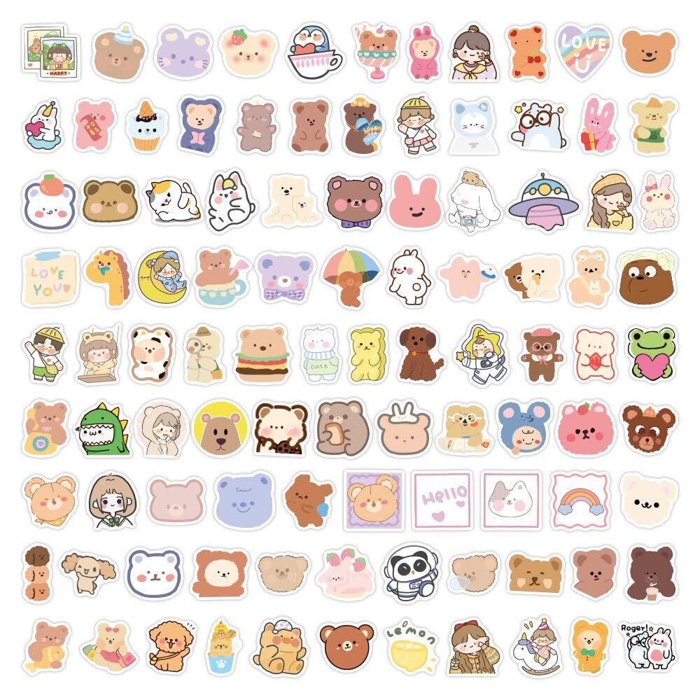 ステッカーセット 100枚 かわいいインスタスタイルクマ 防水ステッカーおしゃれ オシャレDIY ステッカー スーツケース、スノーボード、パソコン、携帯ノート、バイク、車、ギター ヘルメット 、スケボー、キャリーケース、手帳 文房具 ステッカー (t18)
