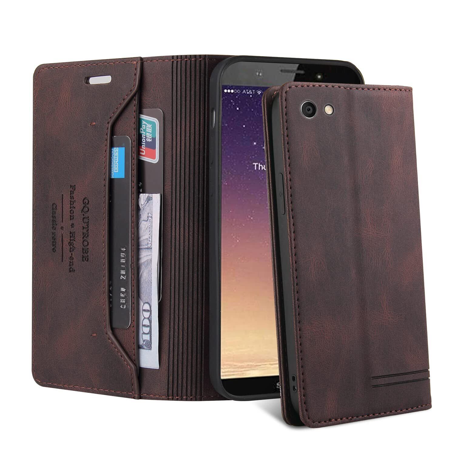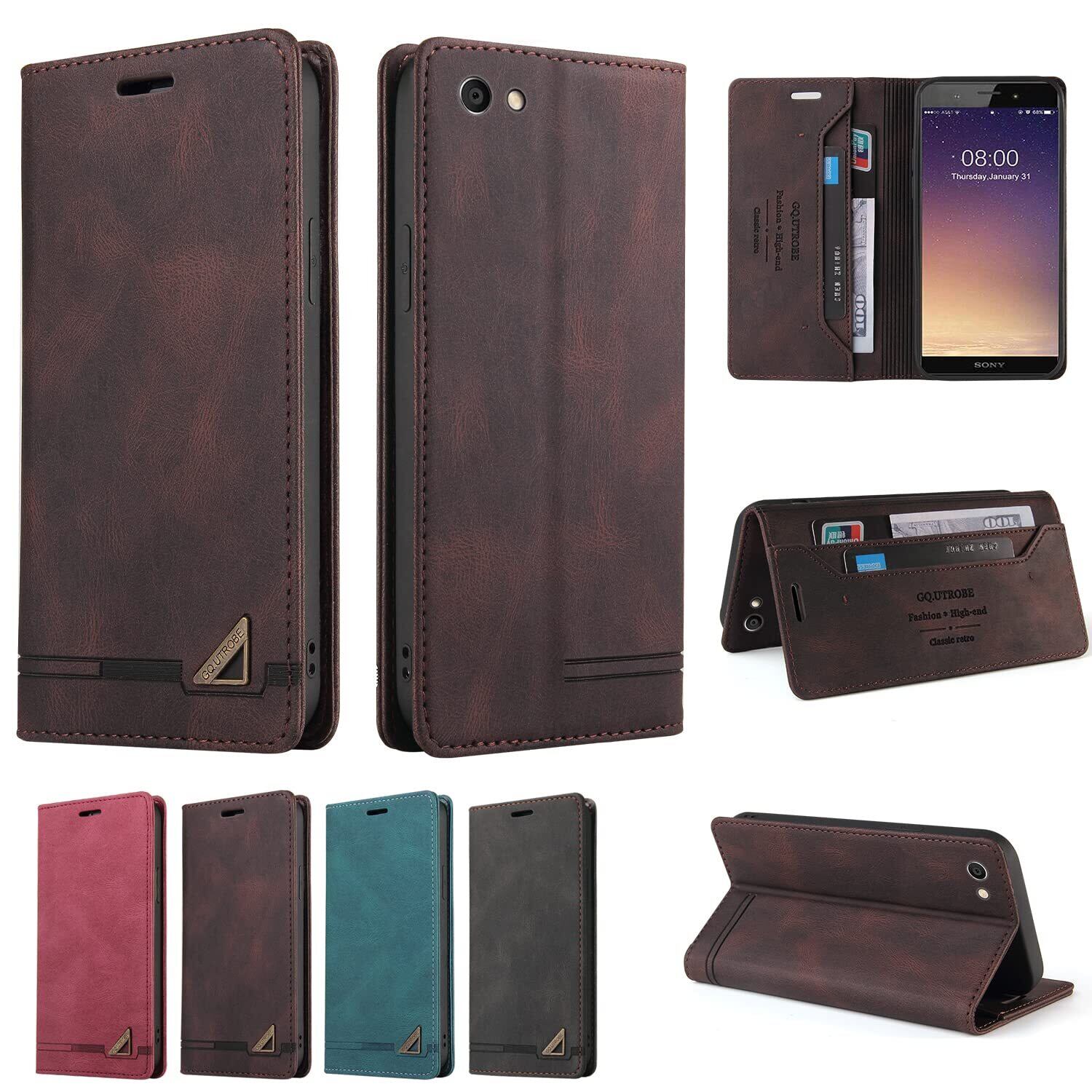 UnivoColors Sony Xperia Ace (SO-02L) 手帳型ケース 高級合皮 スタンド機能 カード収納 マグネット式 TPUソフトカバー 全面保護 カメラ保護 衝撃吸収 RFIDブロッキング おしゃれ カバー(ブラウン) N