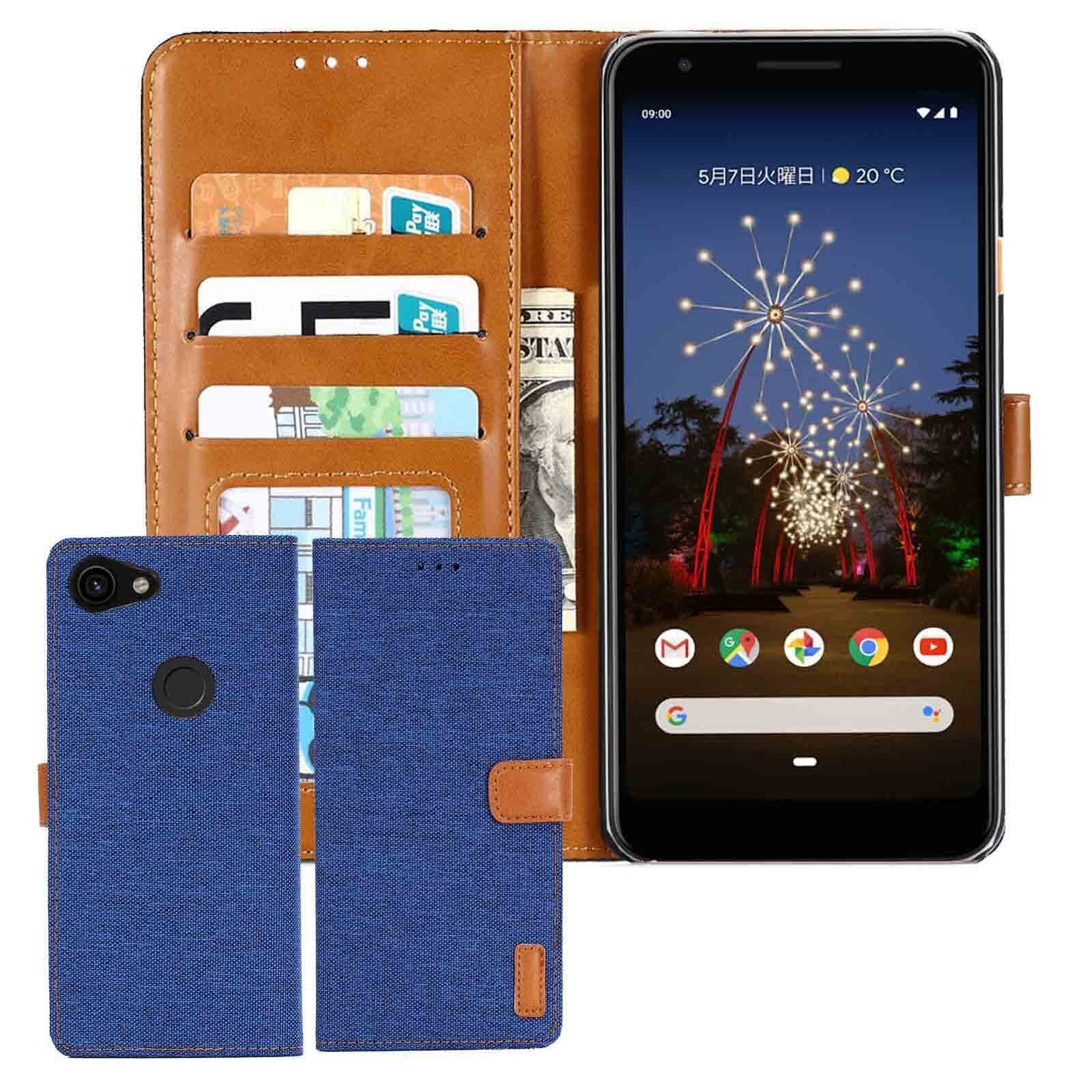 【新春セール】【 Anrek 】Google Pixel 3a XL SoftBank 対応 グーグル 6インチ デニム材料 手帳ケース (ブルー) ソフトバンク ピクセル3a xl pixel3axl ケース カバー 手帳型 カード収納 サイドマグネット スタンド機能付き スマホケース 財布型 耐衝撃 耐摩擦 保護ケースPIXEL3AXL NAVY