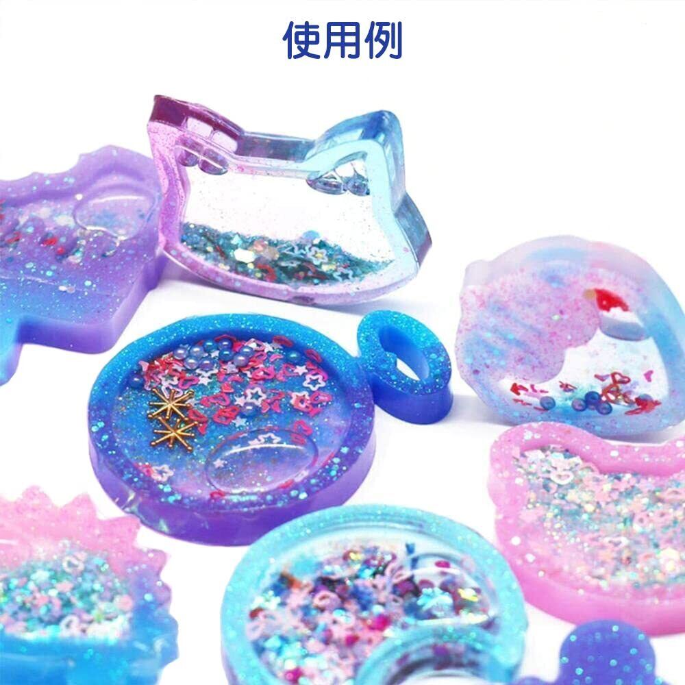幅広い適用:さまざまな形状やデザインのシリコンシェーカーモールドに適用しており、スパンコール、小さなビーズ、キラキラ、紙吹雪などをシール、エポキシレジン、UVレジンのさまざまな種類の装飾やフィラーを埋め込むことができます。