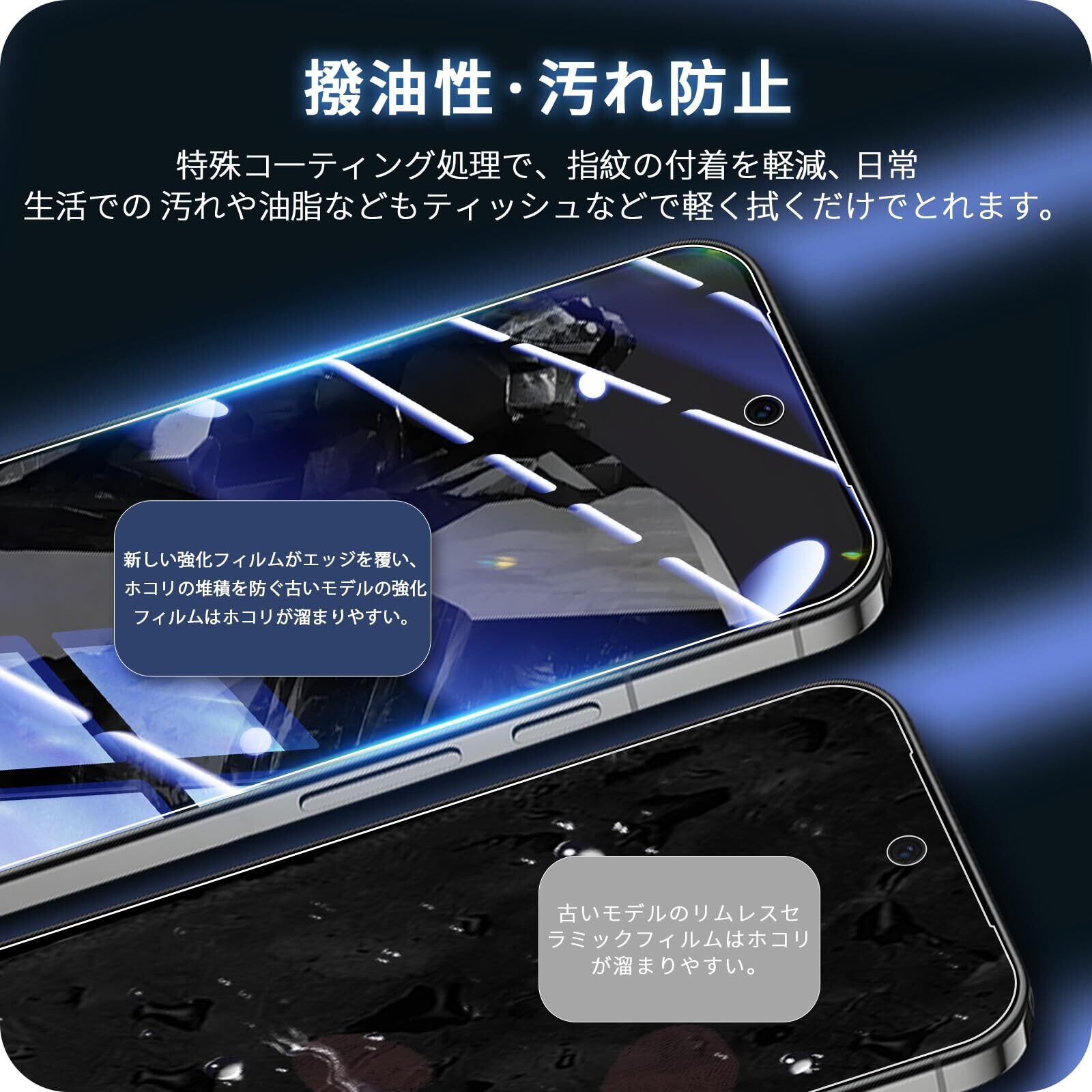 【指紋防止・汚れ防止】ガラスフィルムは特殊なコーティング加工を施しましたので油や指紋など付いても軽く拭けば汚れはすぐに落ちます。