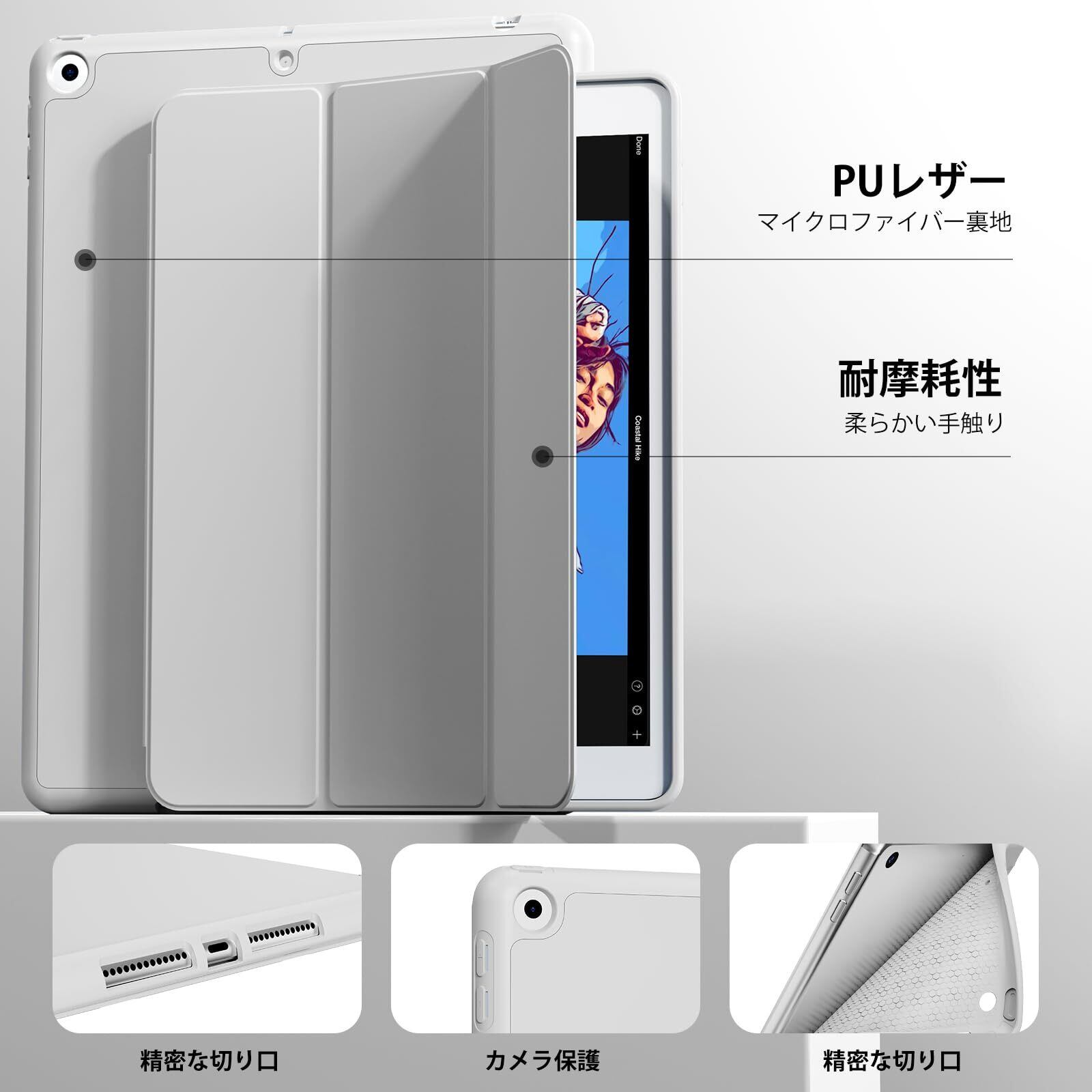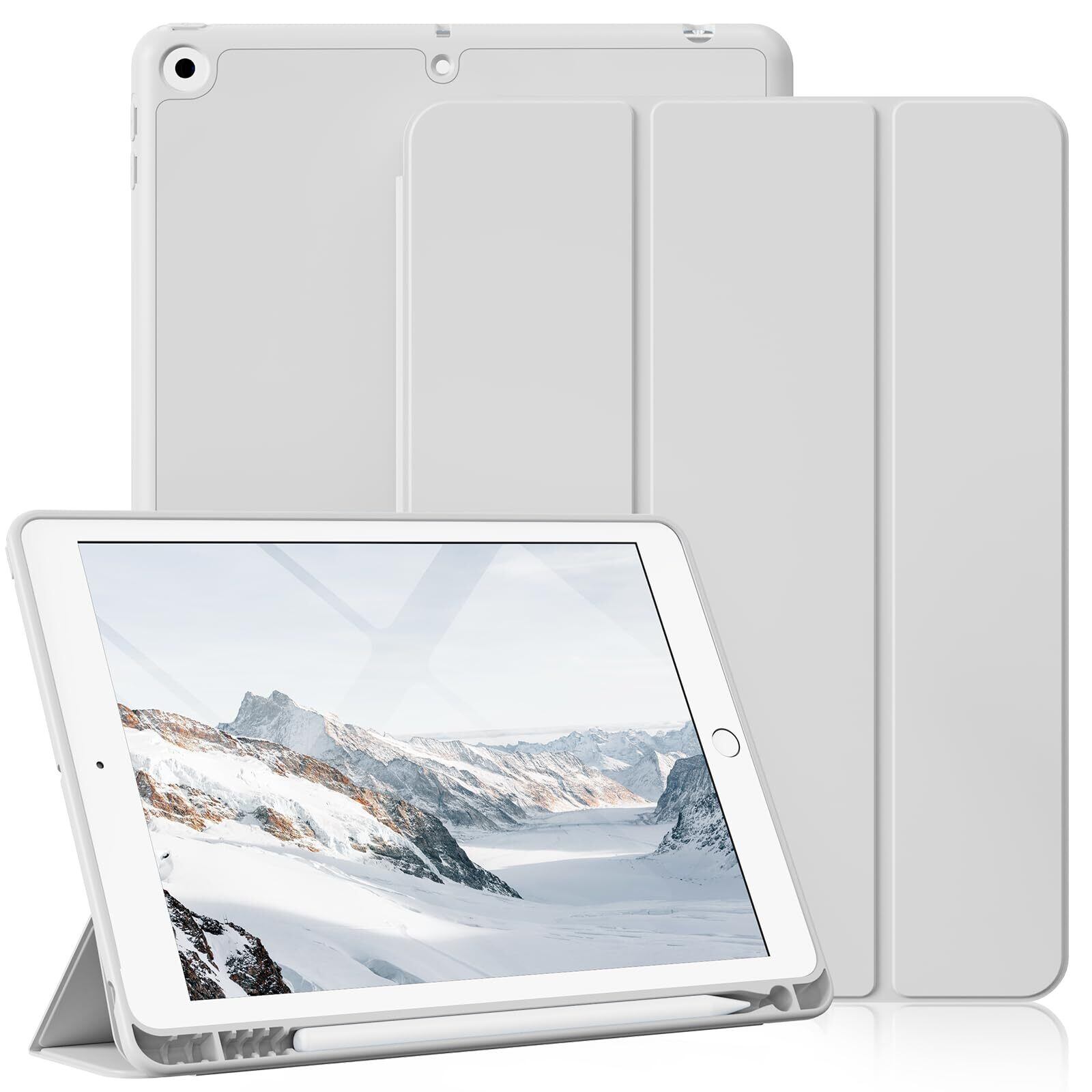 【2022最新】zoyu iPad 9.7インチ 第6世代/第5世代 ケース 2018/2017用 ペンシルホルダー付き ペン収納 三つ折スタンド オートスリープ/ウェイク機能 軽量薄型 ソフトTPUバック スリム保護カバー A1822 A1823 A1893 A1954 グレー