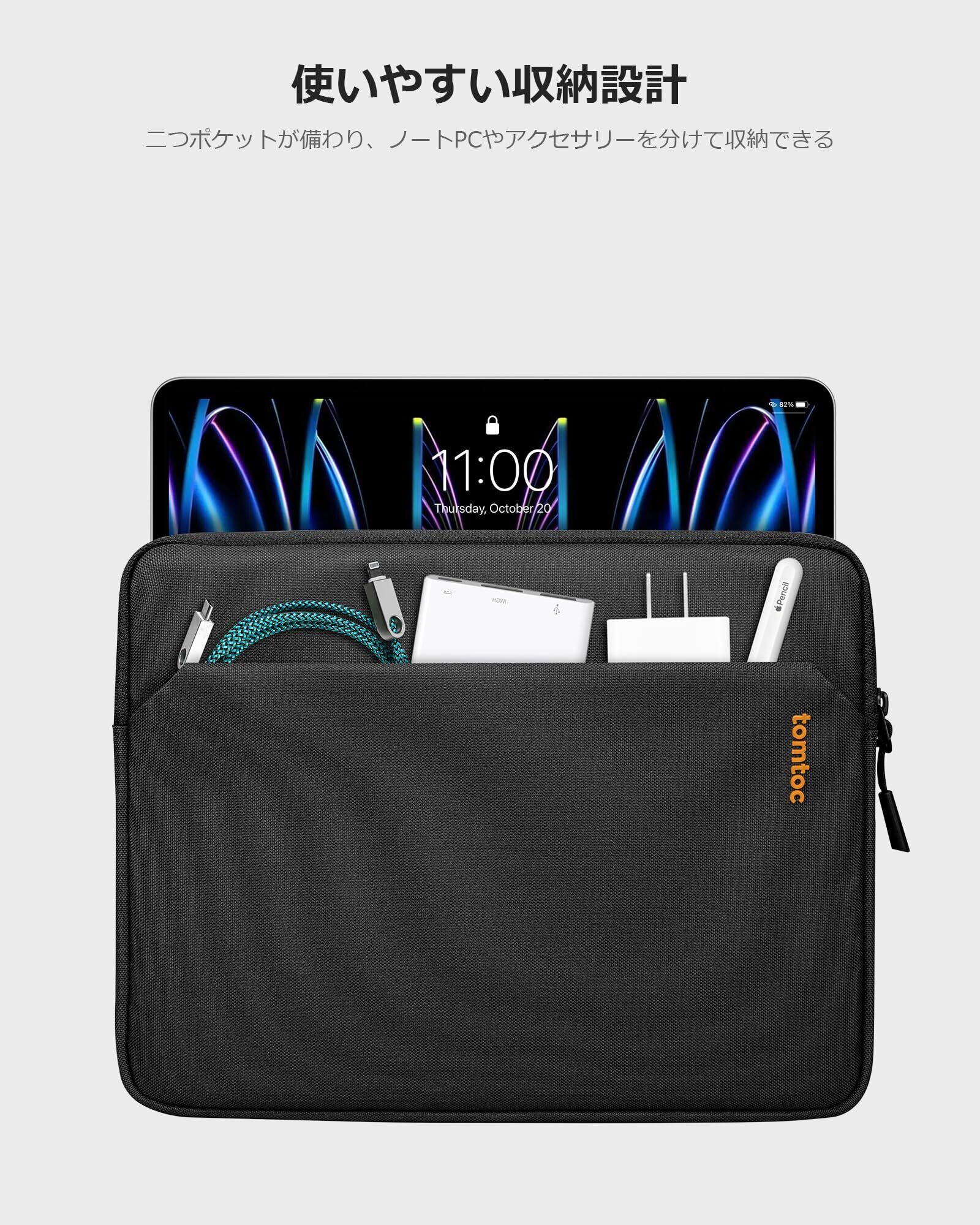 tomtoc 11インチ iPad Air M3 2025 M2 ケース 11インチ iPad Pro M4 4/3/2/1世代 スリーブ 10.9インチ iPad Air 5/4 iPad 10 / 10.2インチ iPad 9 / 10インチ Surface Go 対応 タブレットインナーバッグ Magic Keyboard/スマートフォリオ/iPad Pencil装着対応 ブラック