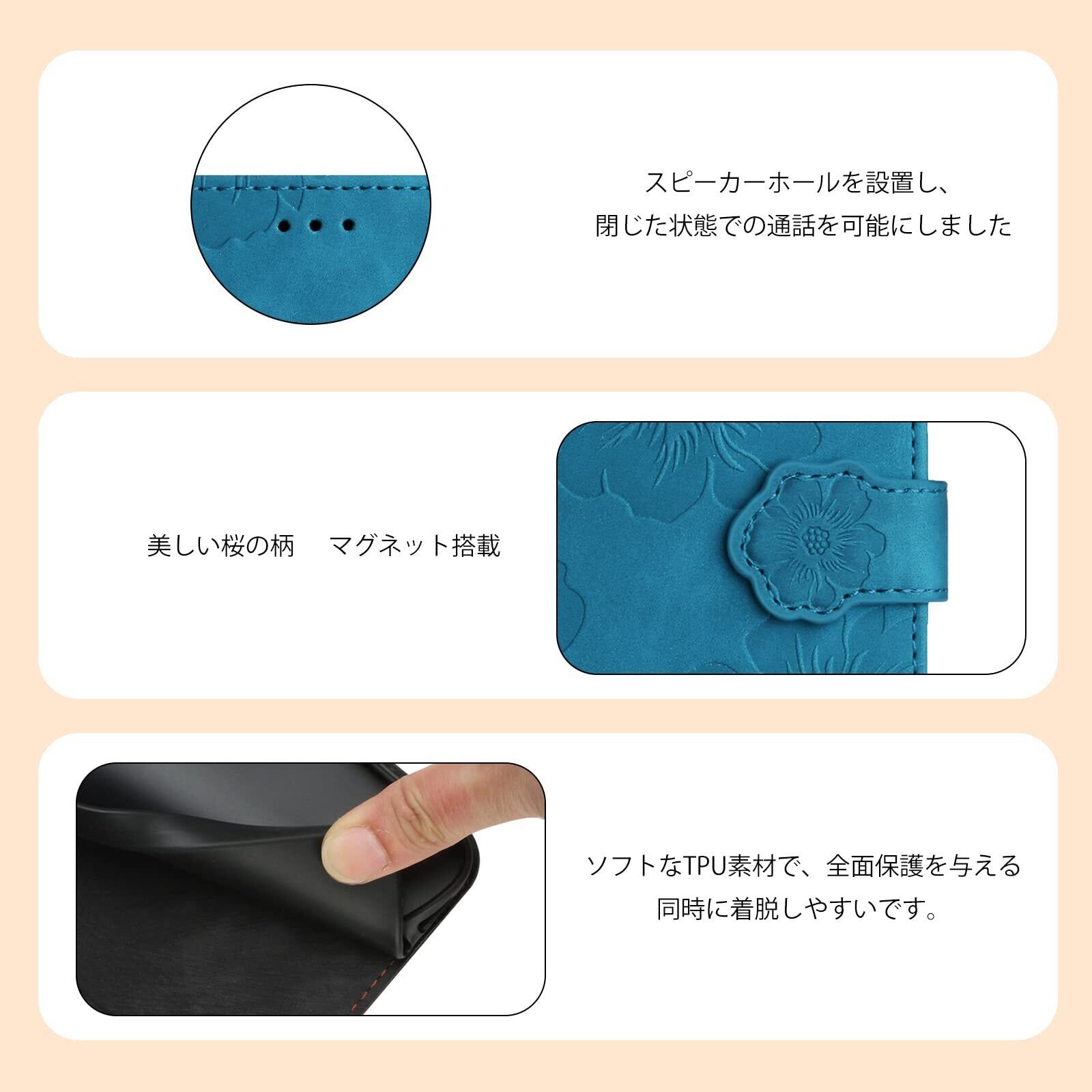 【数量限定】らくらくスマートフォン F-42A / らくらくスマートフォン me F-01L ケース 手帳型 人気 f42a f01l ケース おしゃれ f-42a f-01l ケース 手帳型 本革PUレザー かわいい 美しい桜の柄 f42aスマホケース 耐衝撃 Fujitsu 富士通 らくらくホン f01l ケース 手帳型 スマホケース カード収納 グネット式 スタンド機能 お洒落 軽量(レイクブルー)